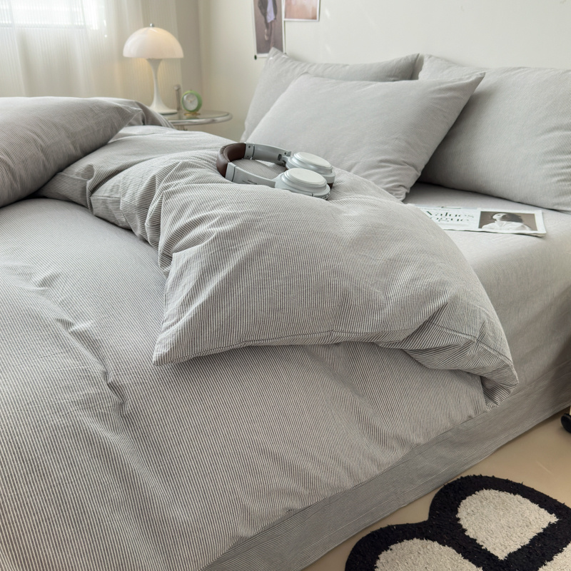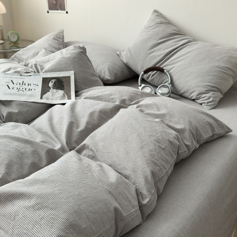 清雅福 2025新款全棉A类水洗棉单枕套 灰密条