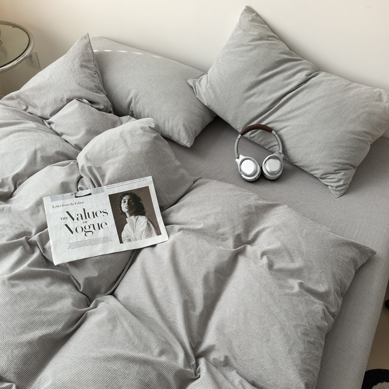 商品名称:清雅福 2025新款全棉A类水洗棉单枕套 灰密条
