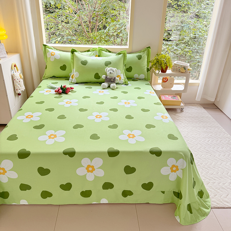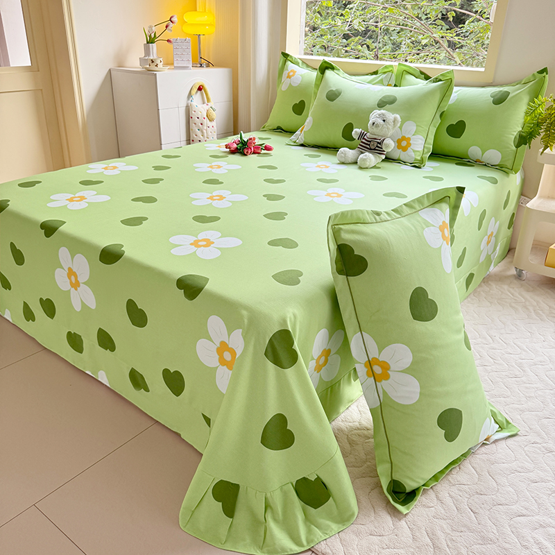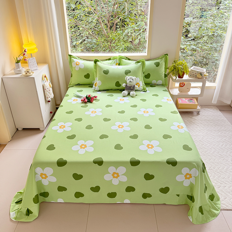 • 91家纺网 家纺一手货源 找家纺 家贝爱 2024新款JBA加厚圆角纯棉磨毛床单 绿色心情