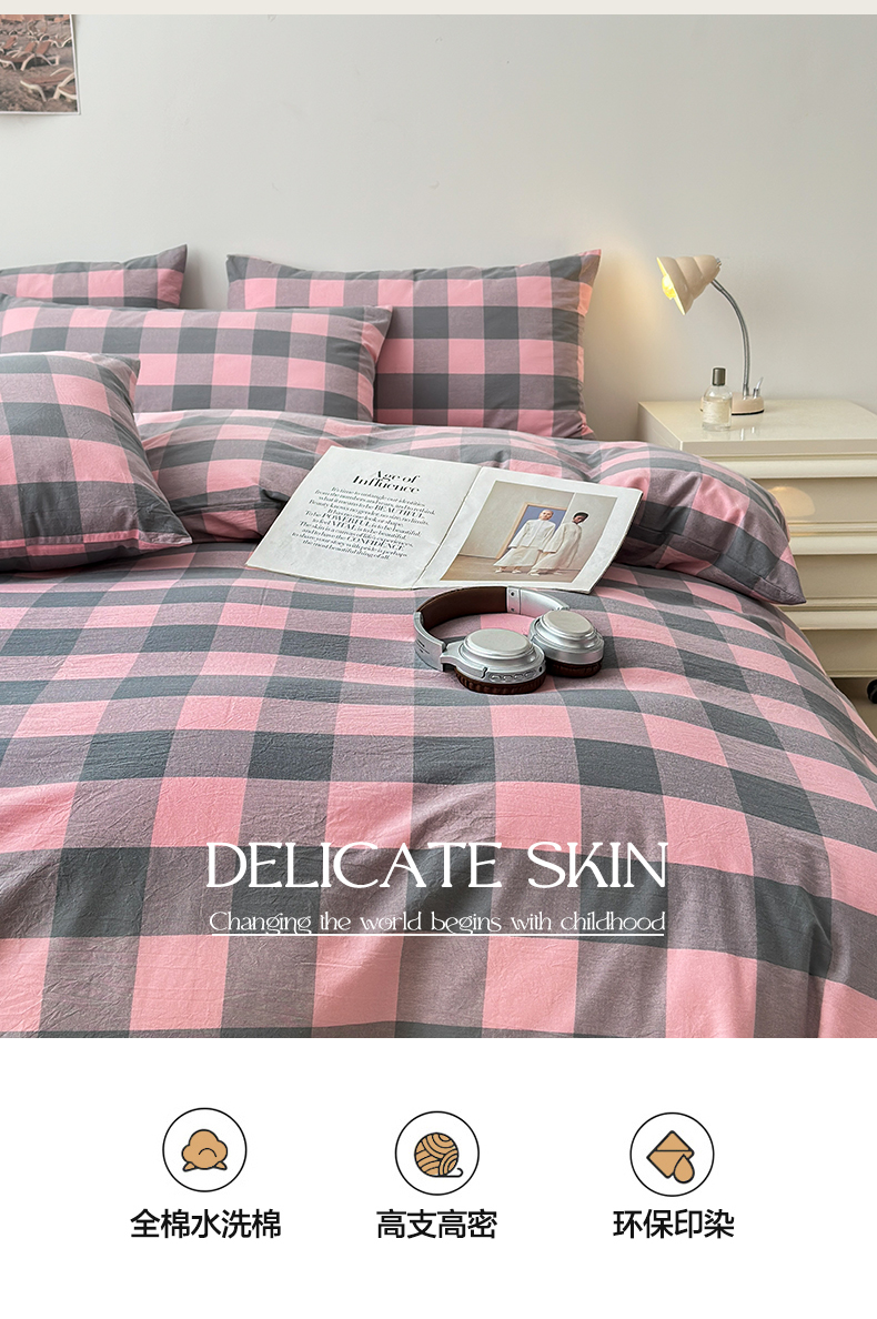 当前位置: 91家纺网 > 商品网购 > 床品套件 > 四件套 > 水洗棉四件套 > 清雅福 2024新款全棉A类水洗棉四件套单被套 青春雅格-粉