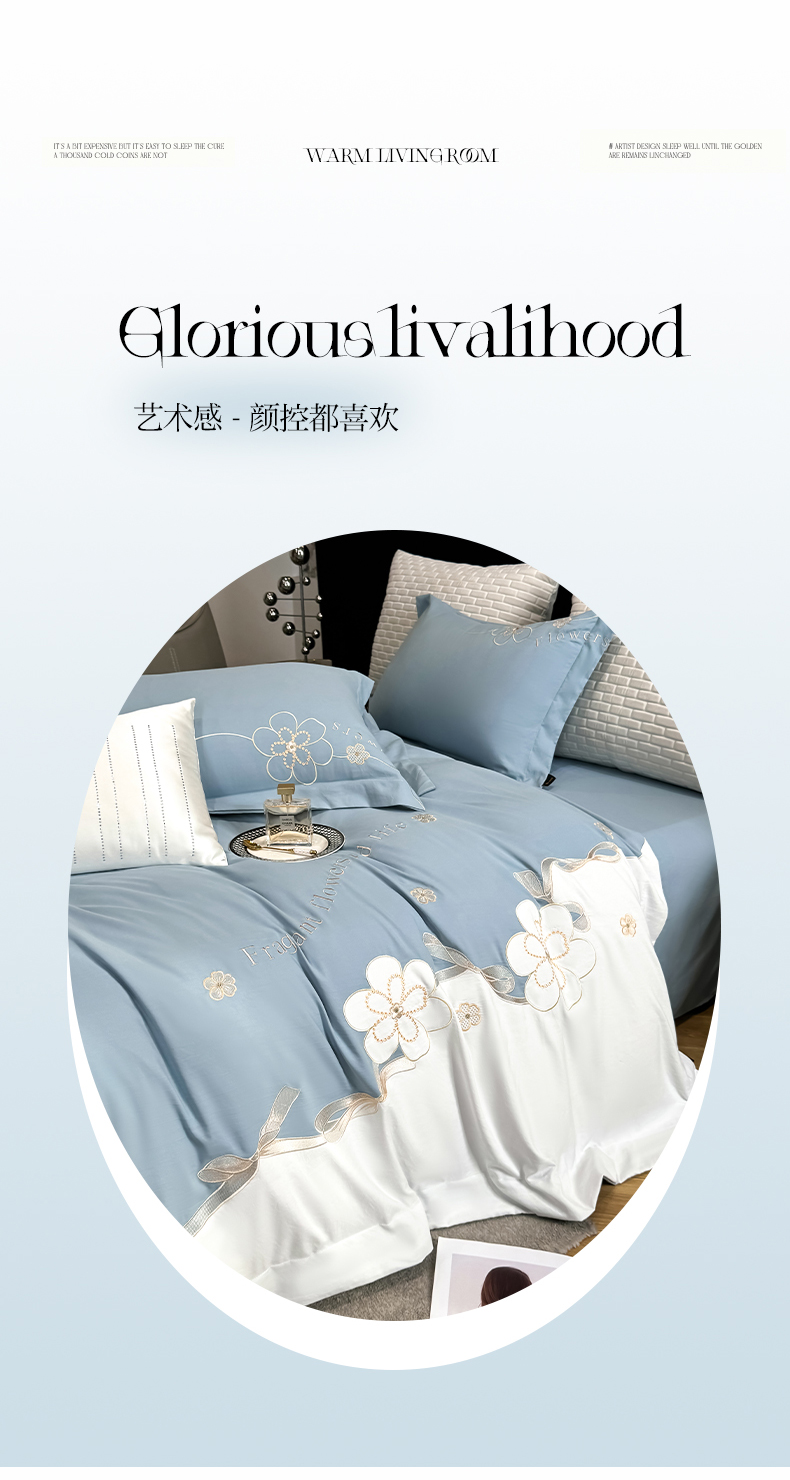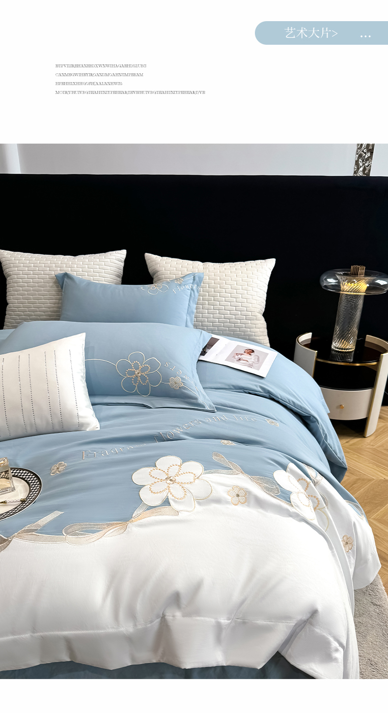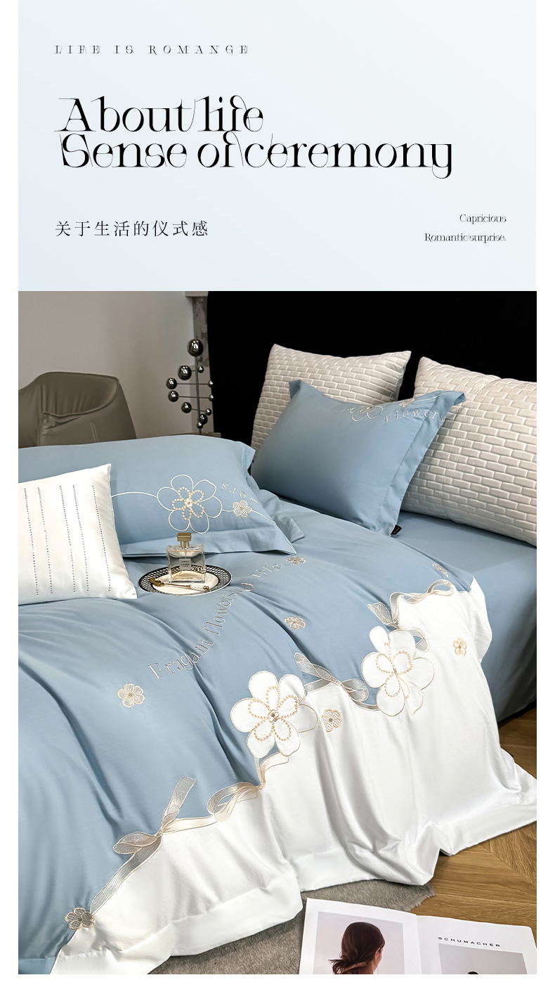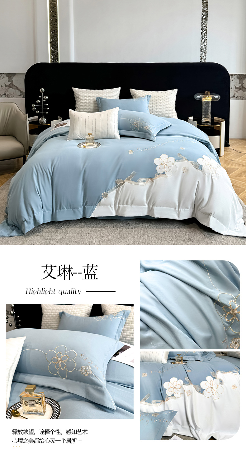 棠颂家纺 2025新款亲肤精纺棉刺绣四件套(礼盒款) 艾琳--蓝