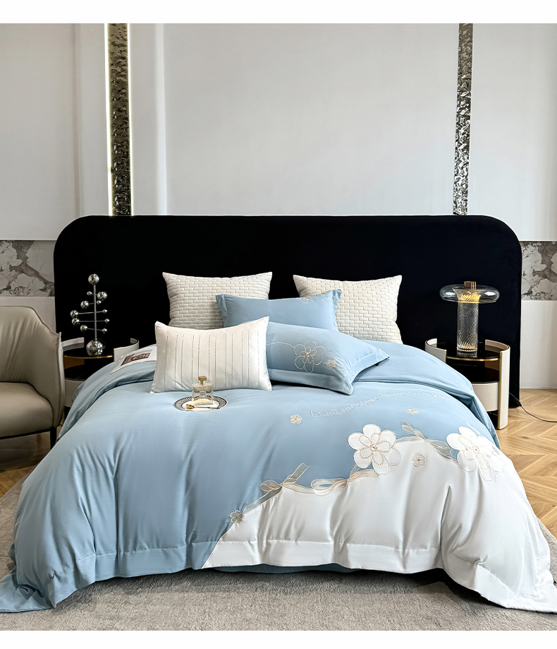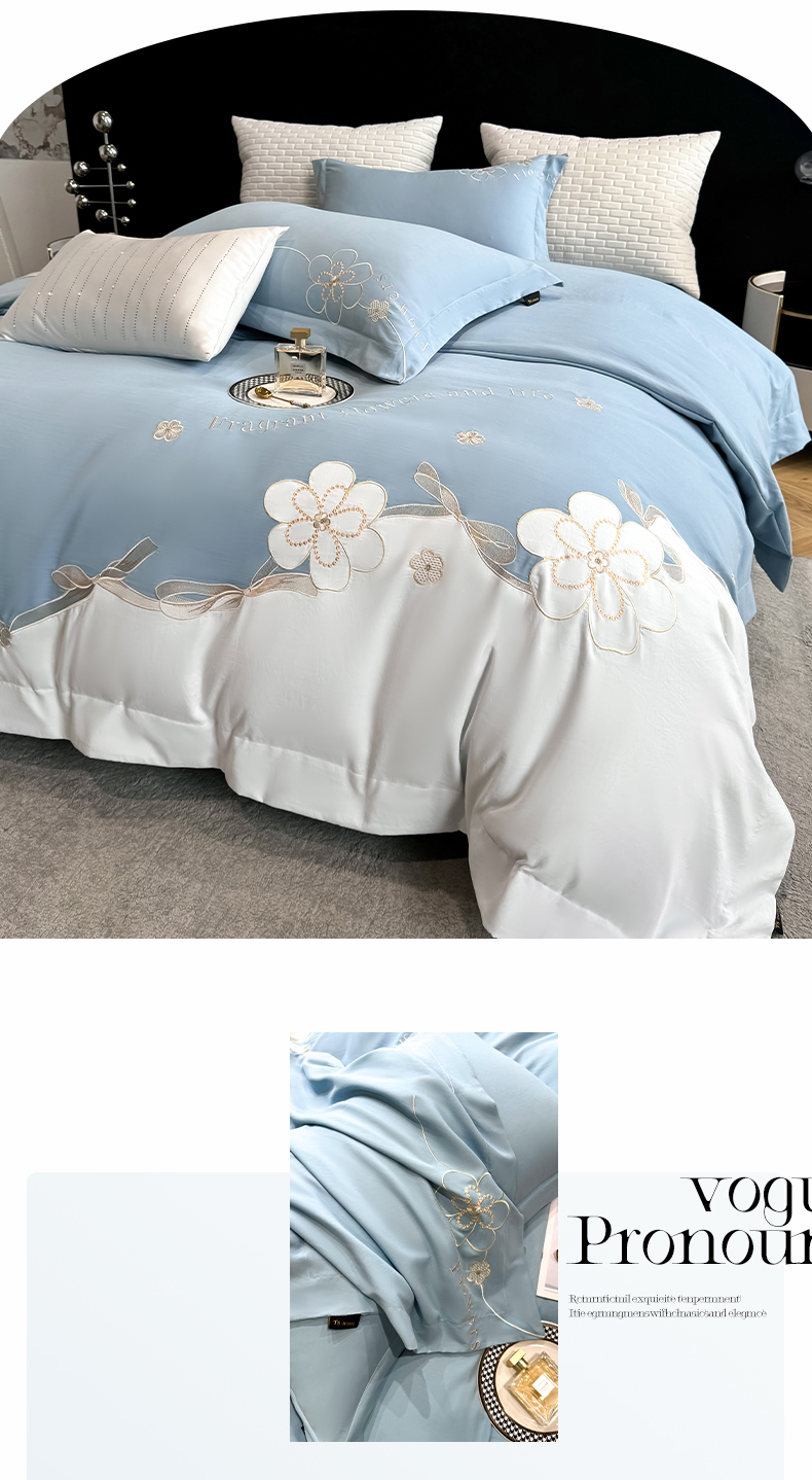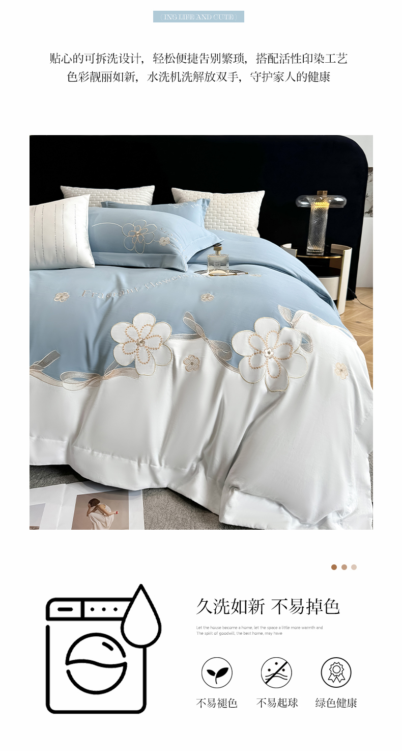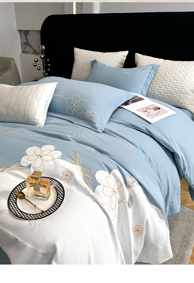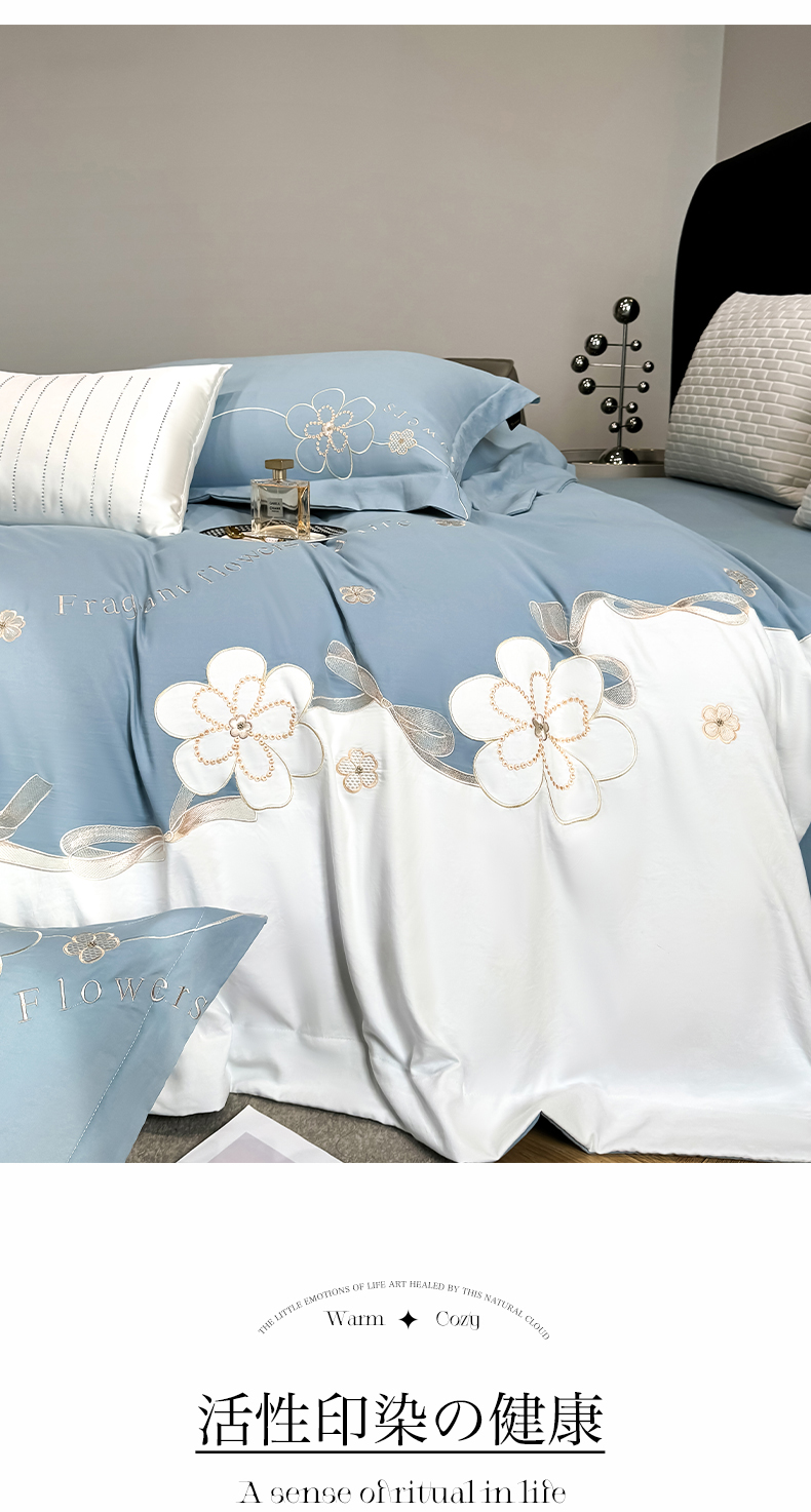 棠颂家纺 2025新款亲肤精纺棉刺绣四件套(礼盒款) 艾琳--蓝