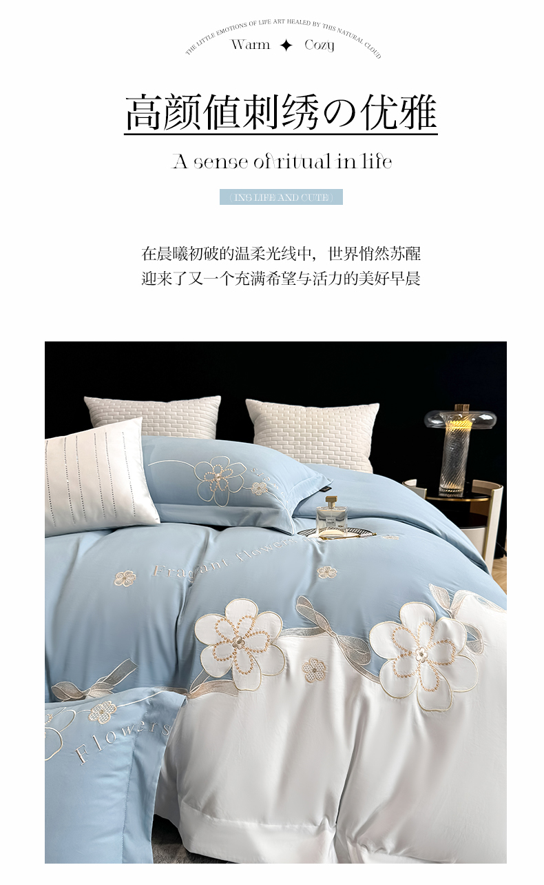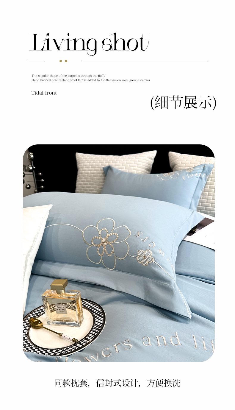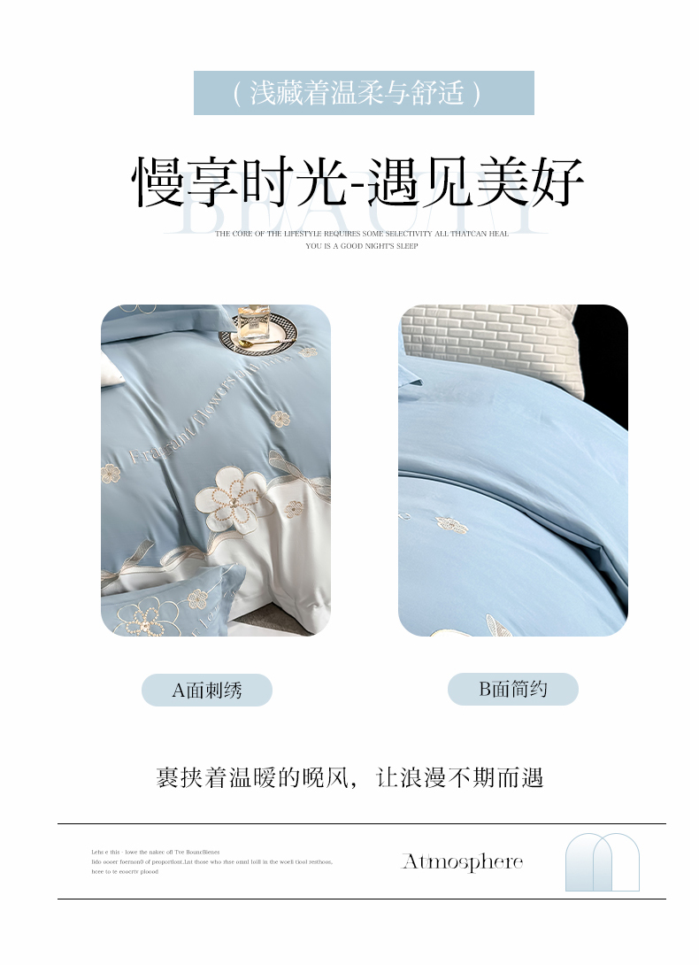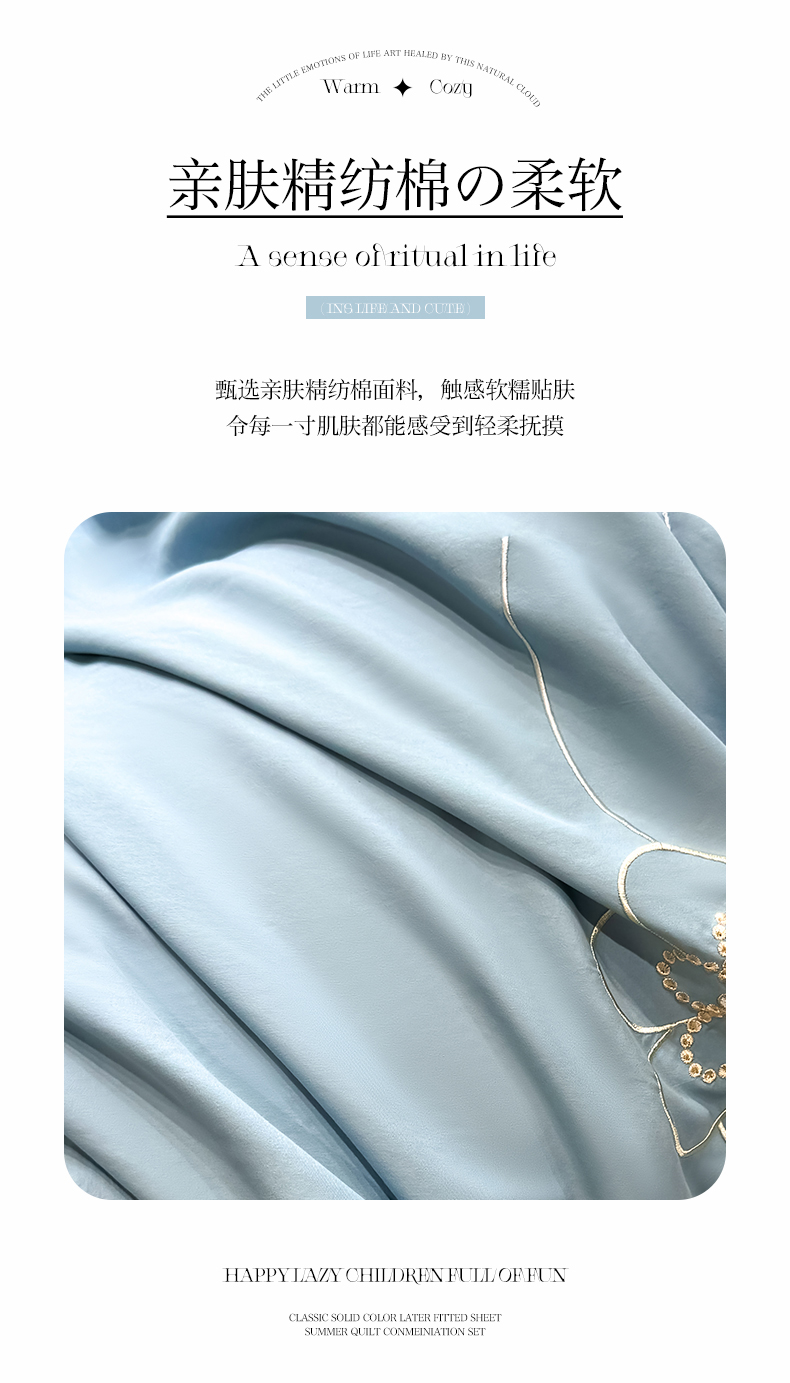 商品名称:棠颂家纺 2025新款亲肤精纺棉刺绣四件套(礼盒款) 艾琳--蓝