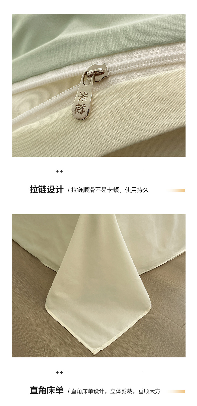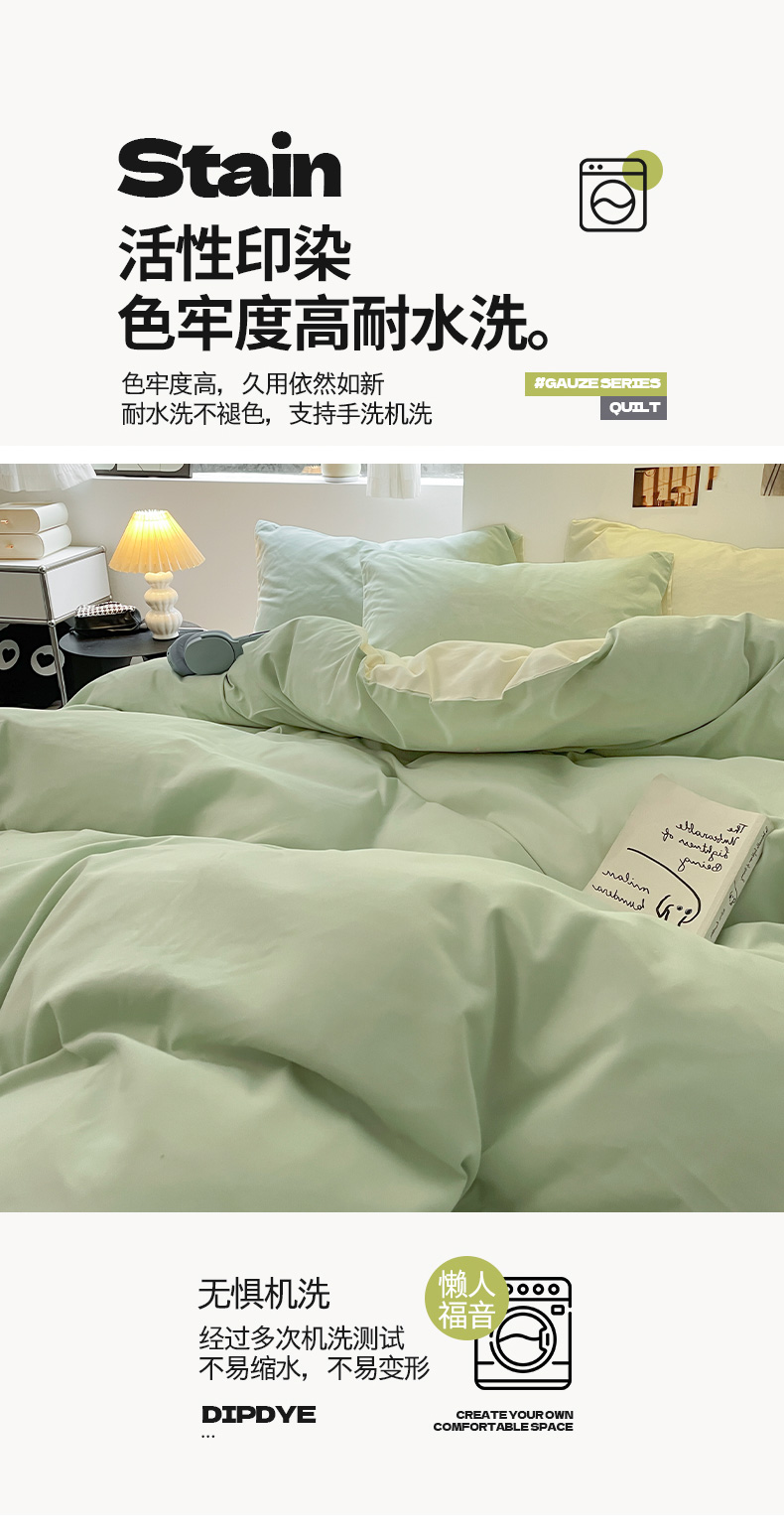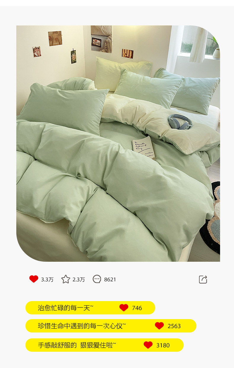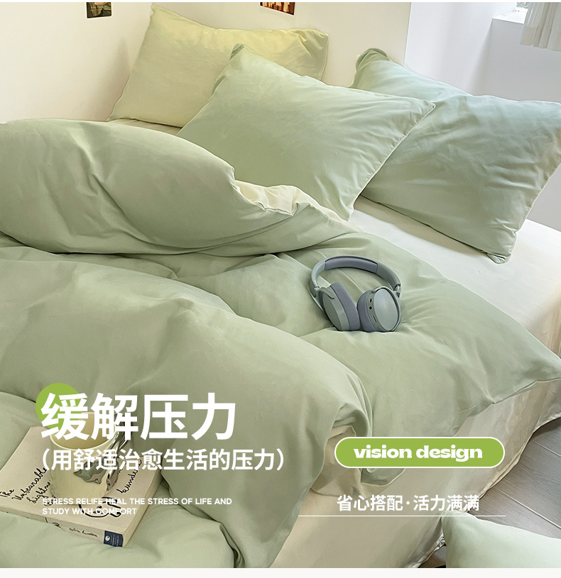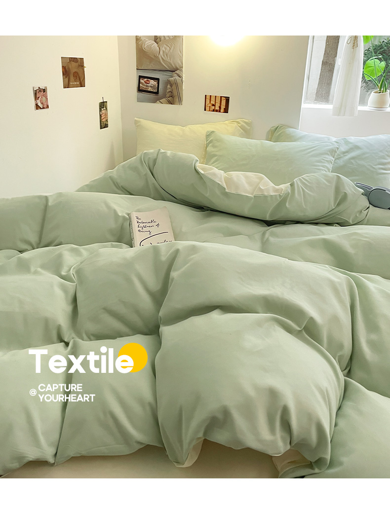 当前位置: 91家纺网 > 商品网购 > 床品套件 > 四件套 > 磨毛活性四件套 > 米粒 2024新款纯色简约双拼磨毛四件套 水绿+奶白