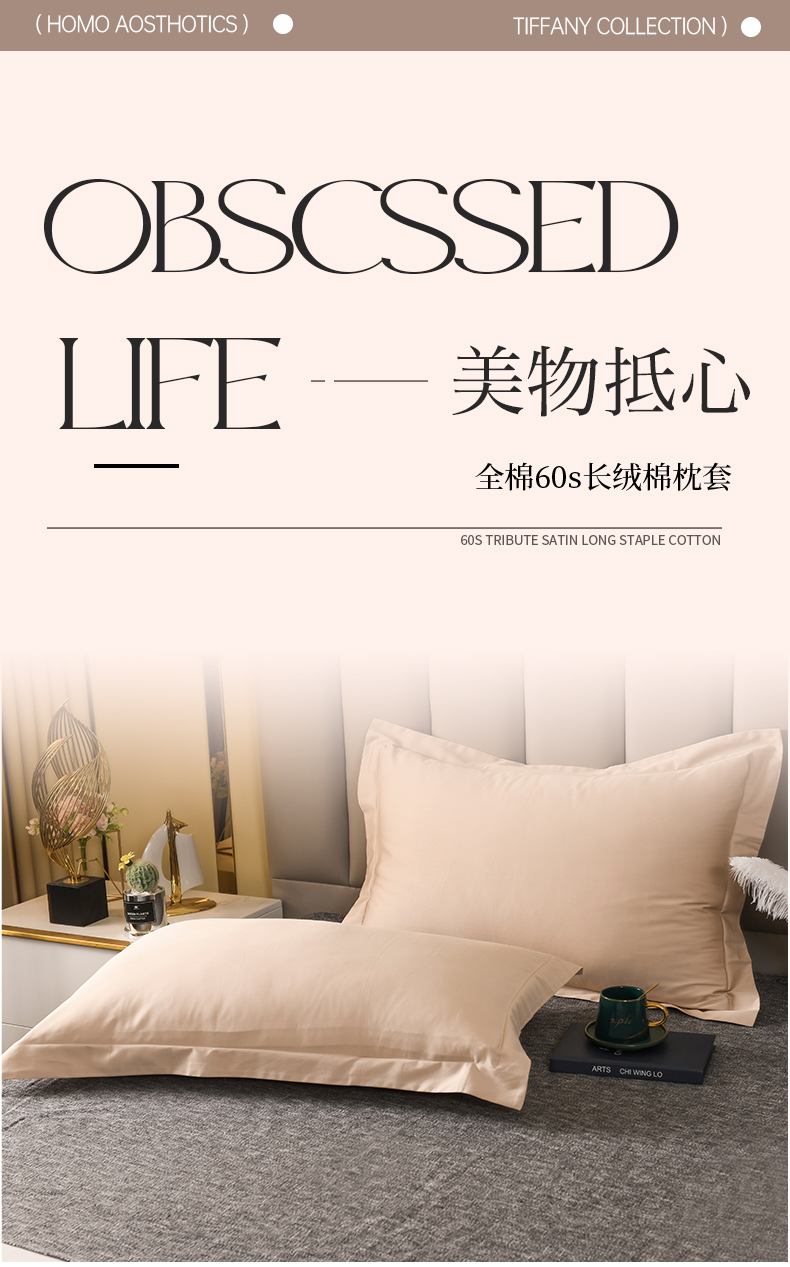(总)星芯合家纺 2024新款全棉60支长绒棉枕套,高级灰,香槟色