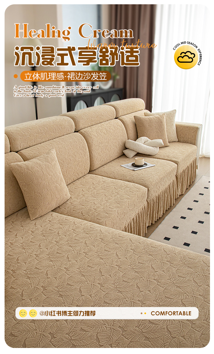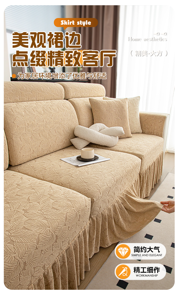 当前位置: 91家纺网 > 商品网购 > 居家布艺 > 坐垫/椅垫/沙发垫 > 沙发垫 > 沐沐家纺 2026新款小树叶裙边沙发笠 卡其