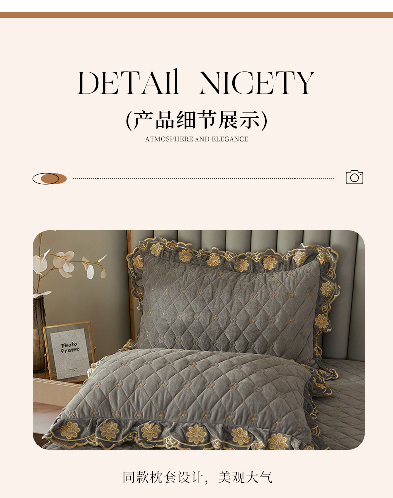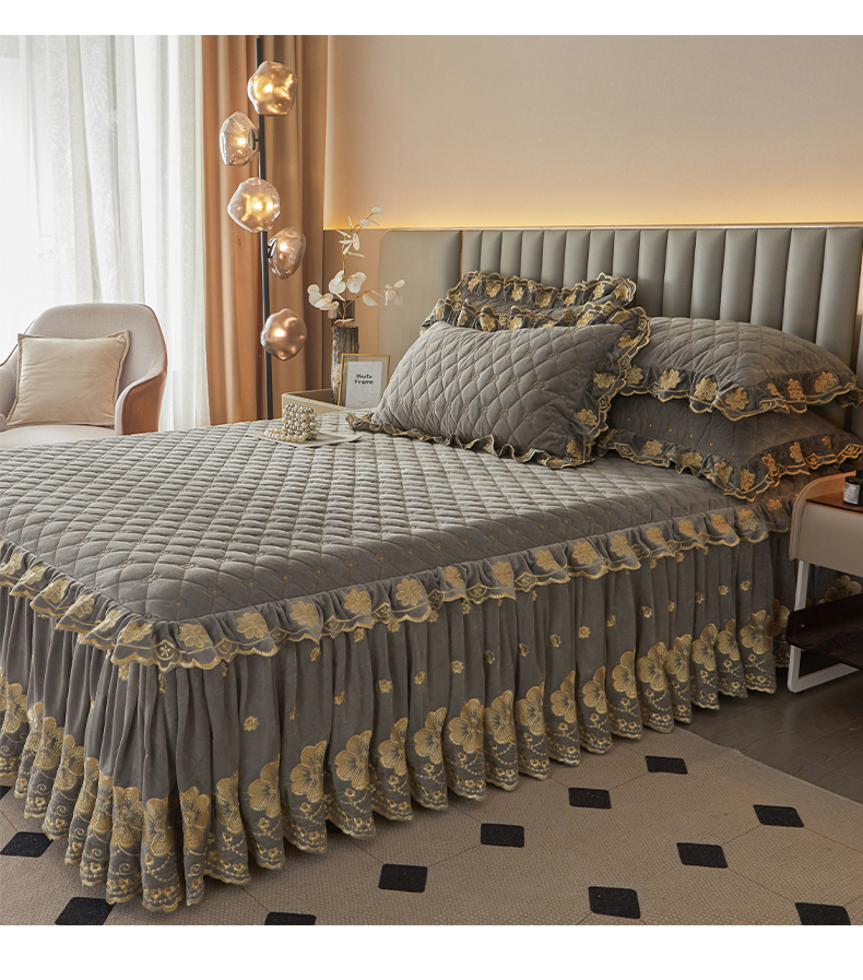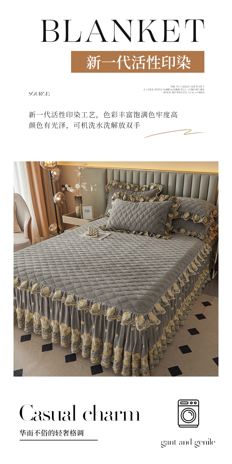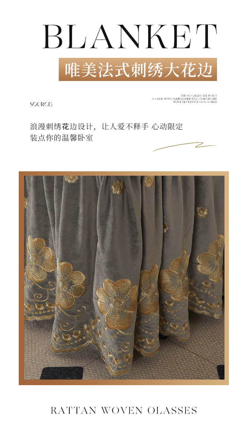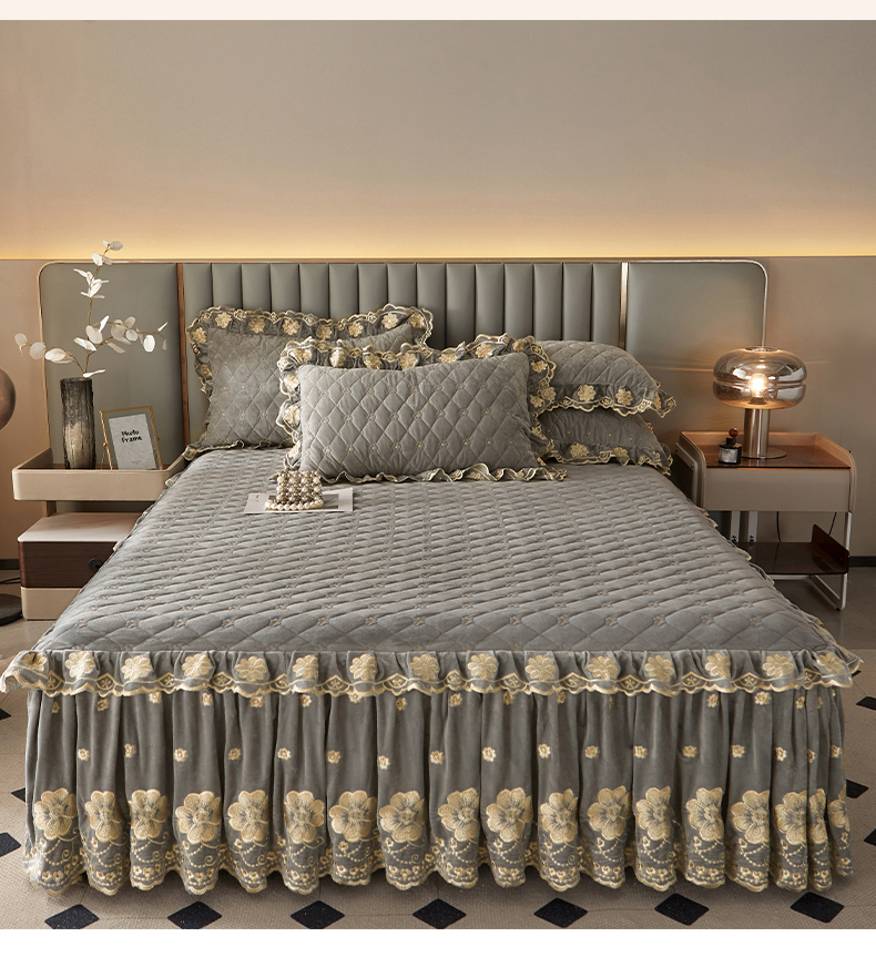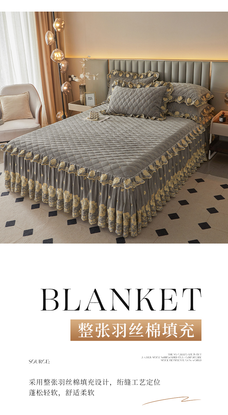 • 91家纺网 家纺一手货源 找家纺 罗艺轩 2025新款婴儿绒双层夹棉可拆卸床裙-花语 花语-高级灰