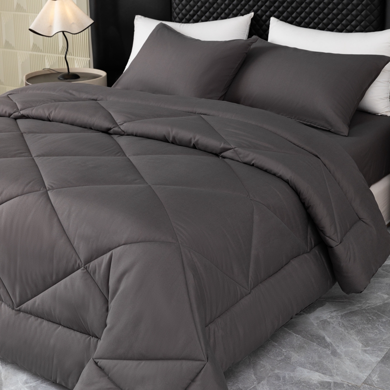 (总)2025新款美国跨境被芯四季被子三件套,藏青,粉色,黑色,灰色,米色