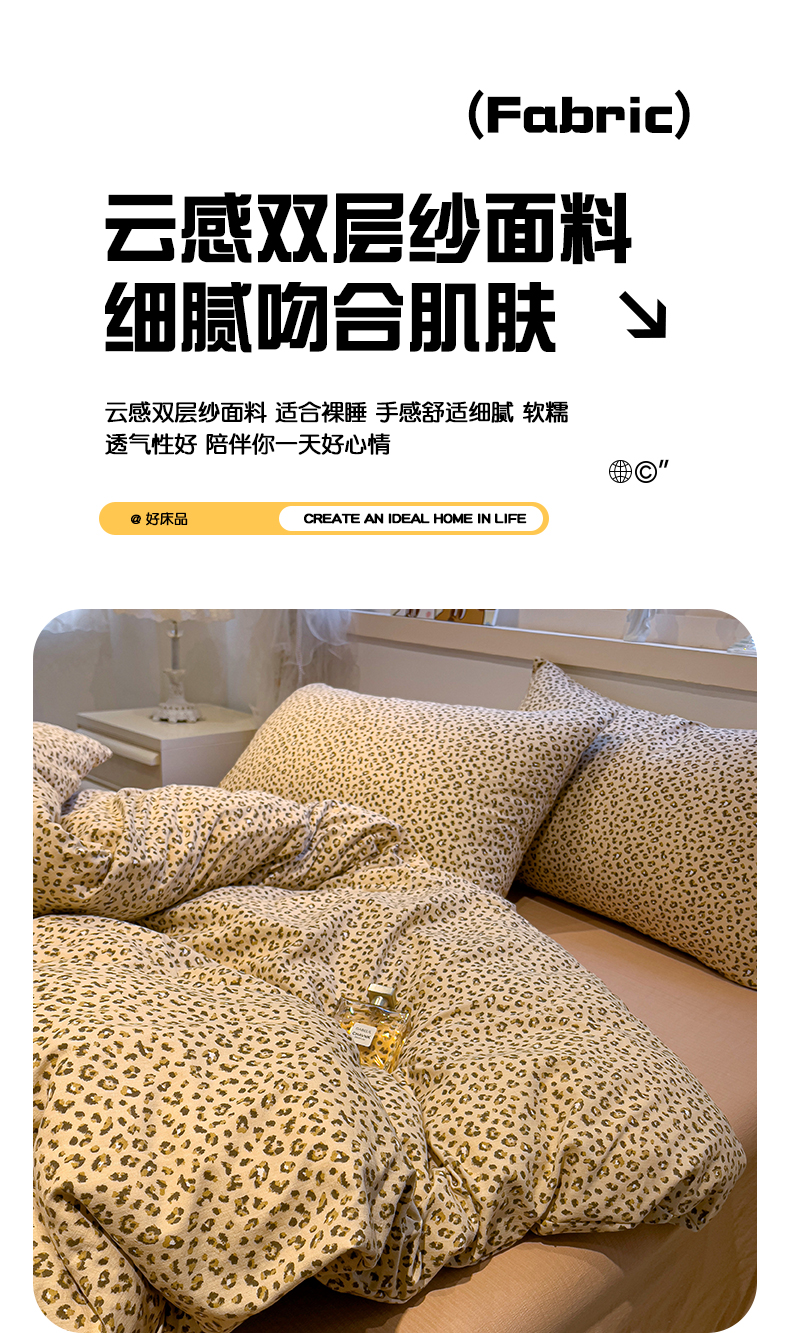 当前位置: 91家纺网 > 商品网购 > 床品套件 > 四件套 > 其它四件套 > 奈颜 2025新款爆款云感提花双层纱裸睡四件套-叠拍图 豹纹咖