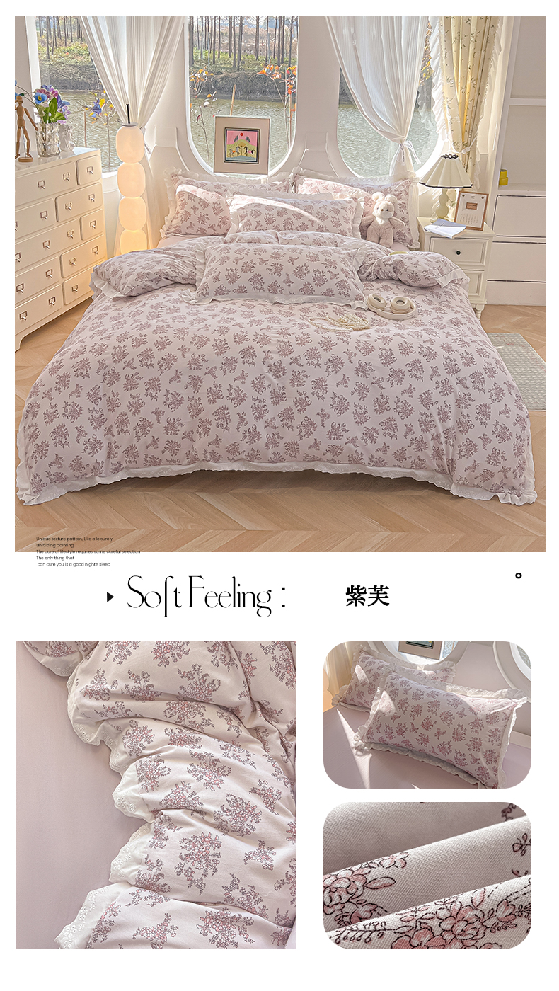 当前位置: 91家纺网 > 商品网购 > 床品套件 > 四件套 > 双层纱四件套 > 多乐家纺 2025新款A类有氧针织双层纱水洗棉四件套(提供买家秀) 紫芙