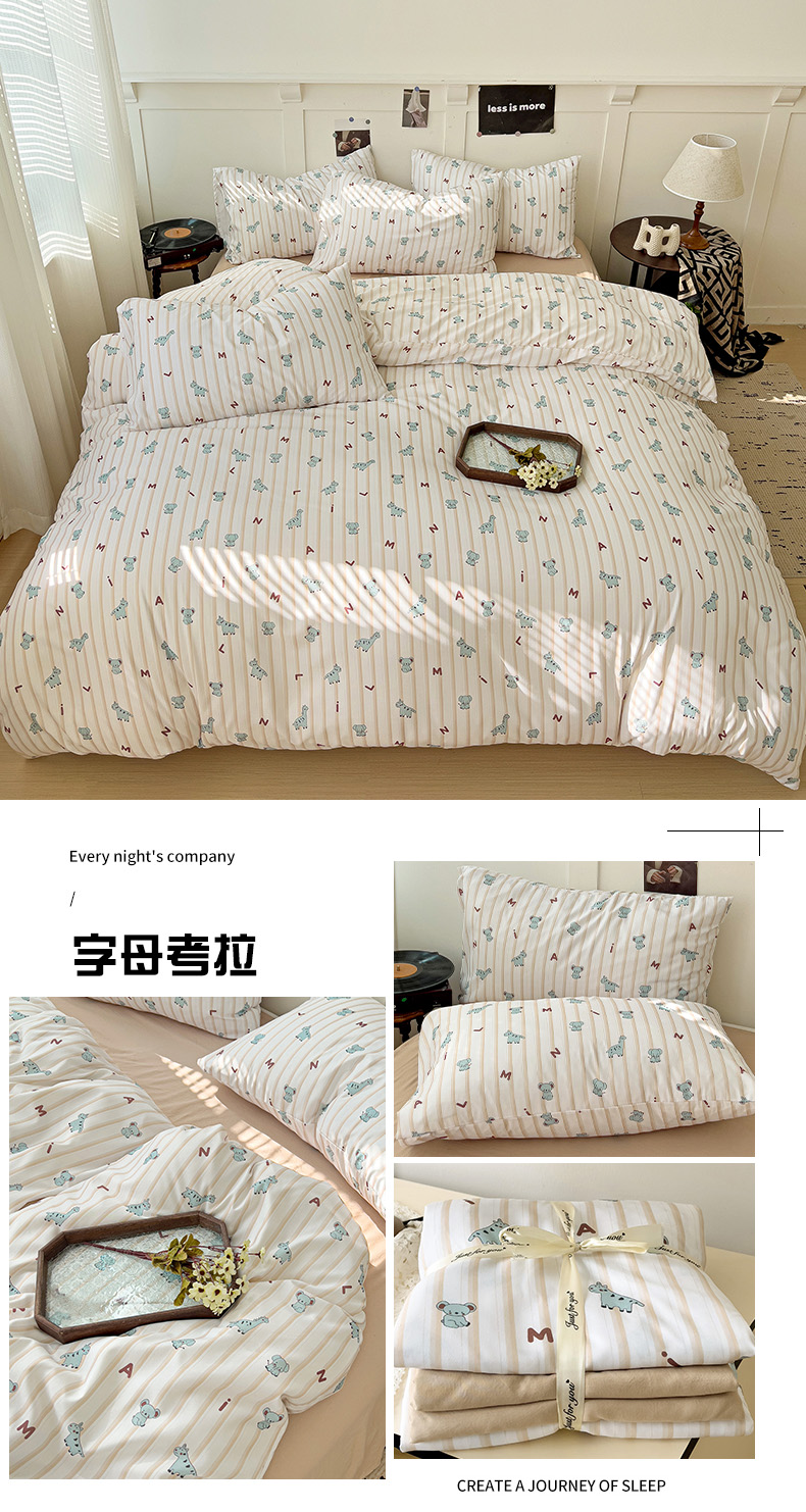 商品名称:港岛妹妹 2025 新款水洗双层纱 绑带款系列四件套(可提供买家秀) 字母考拉