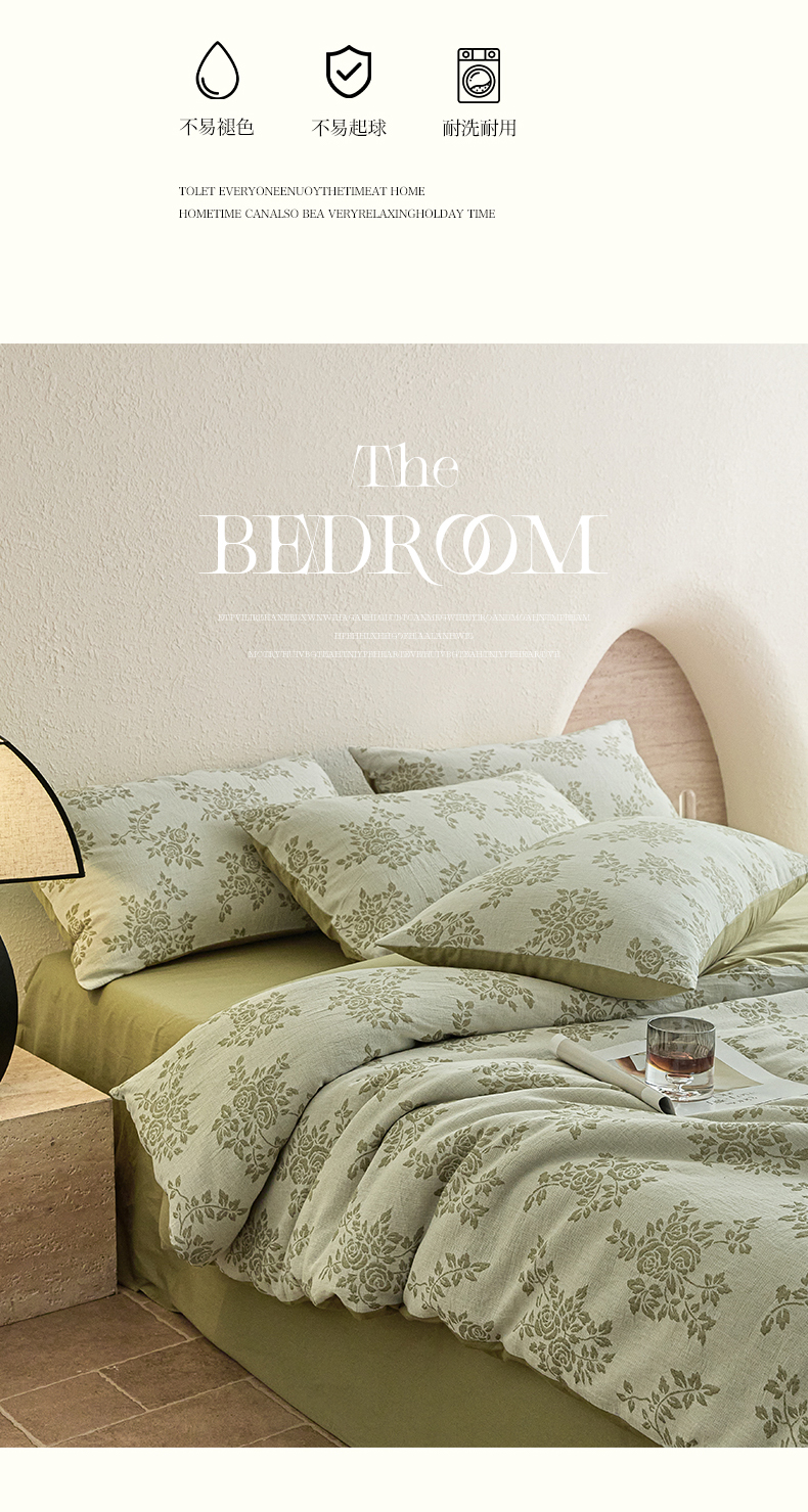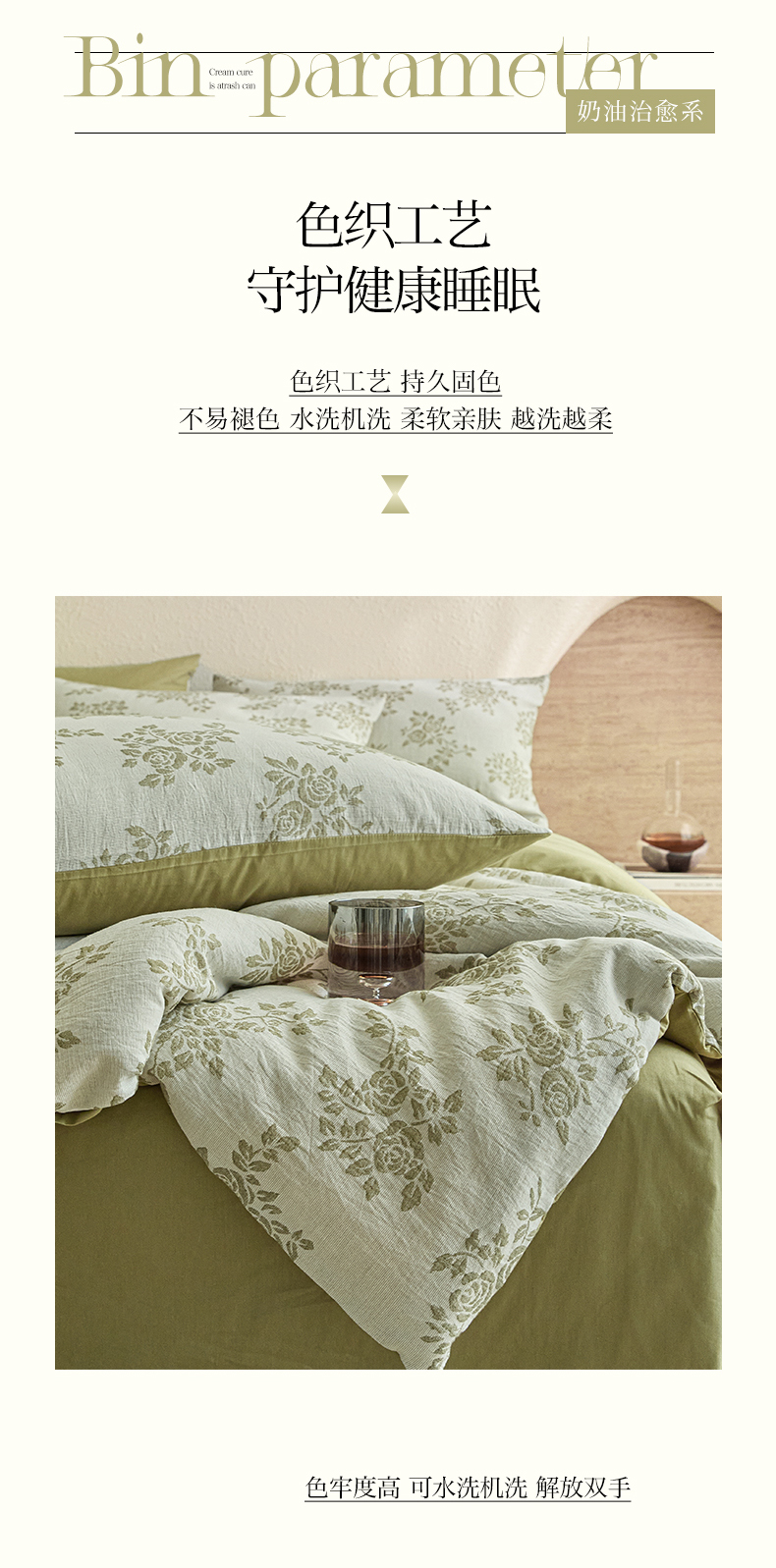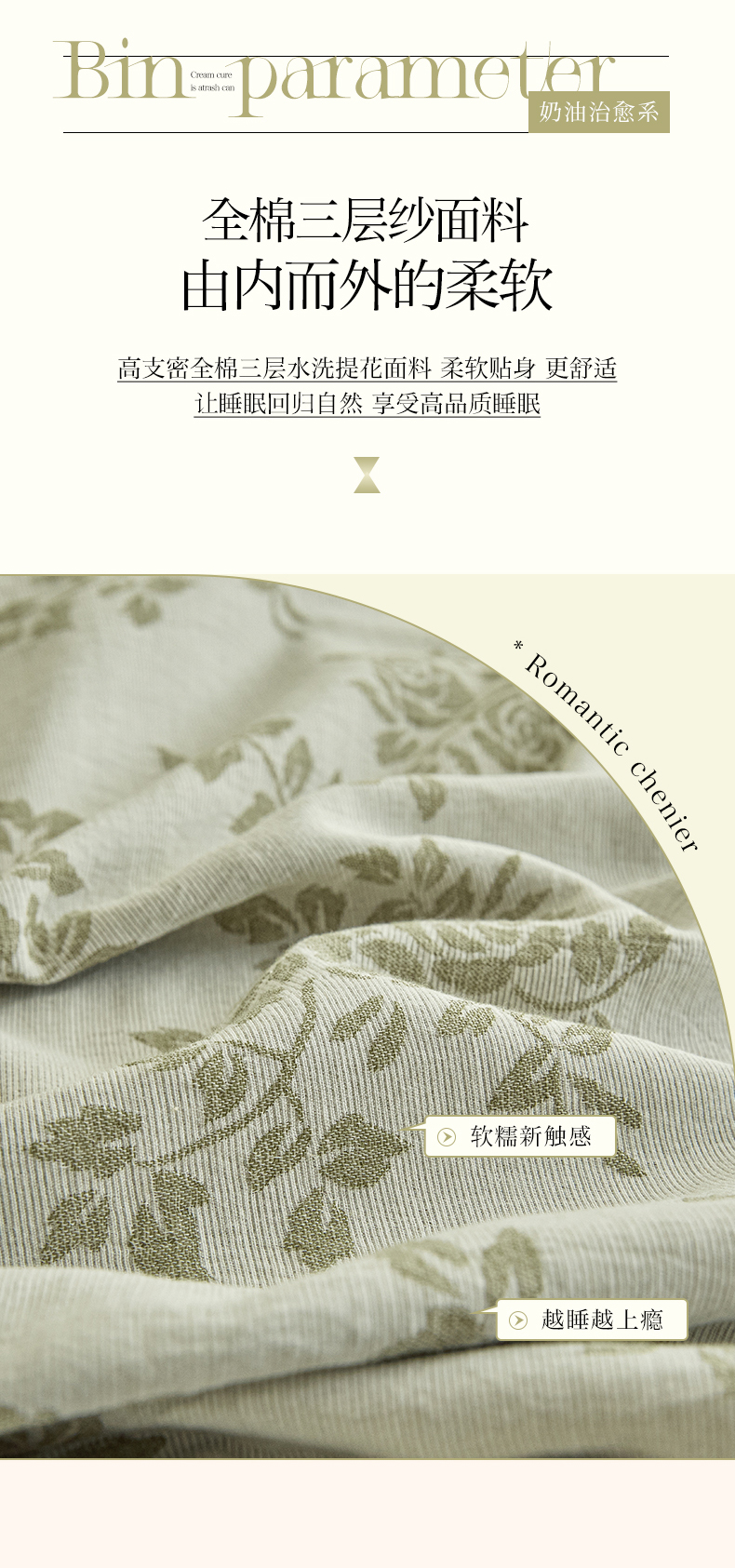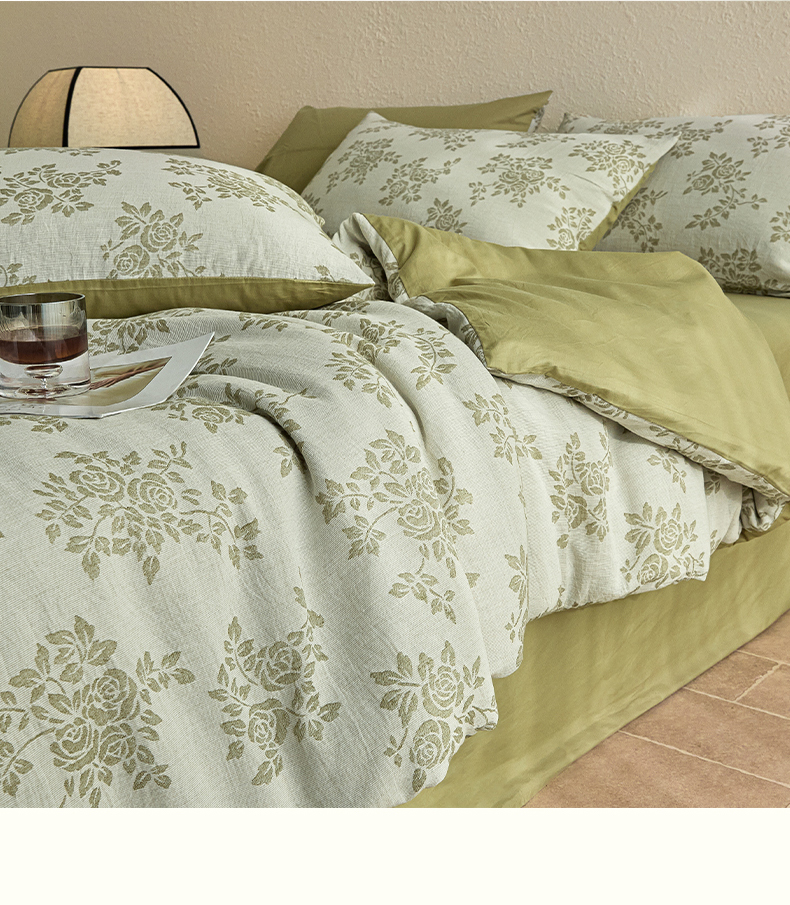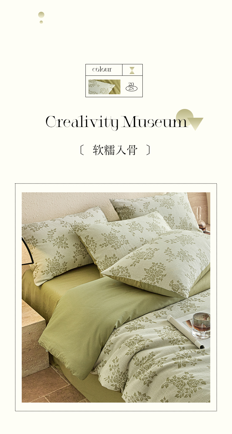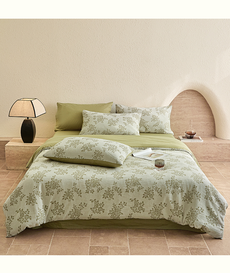 当前位置: 91家纺网 > 商品网购 > 床品套件 > 四件套 > 全棉普通四件套 > 2025新款全棉三层纱色织大提花四件套系列 长夏-果绿