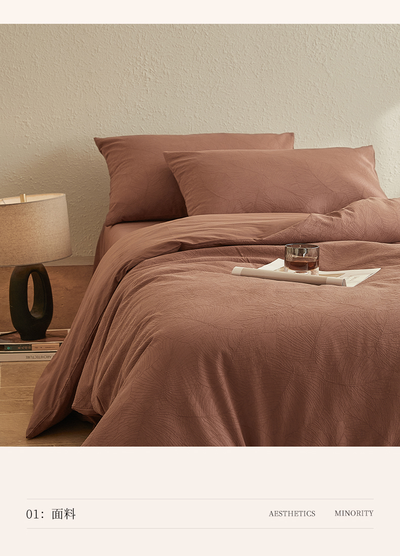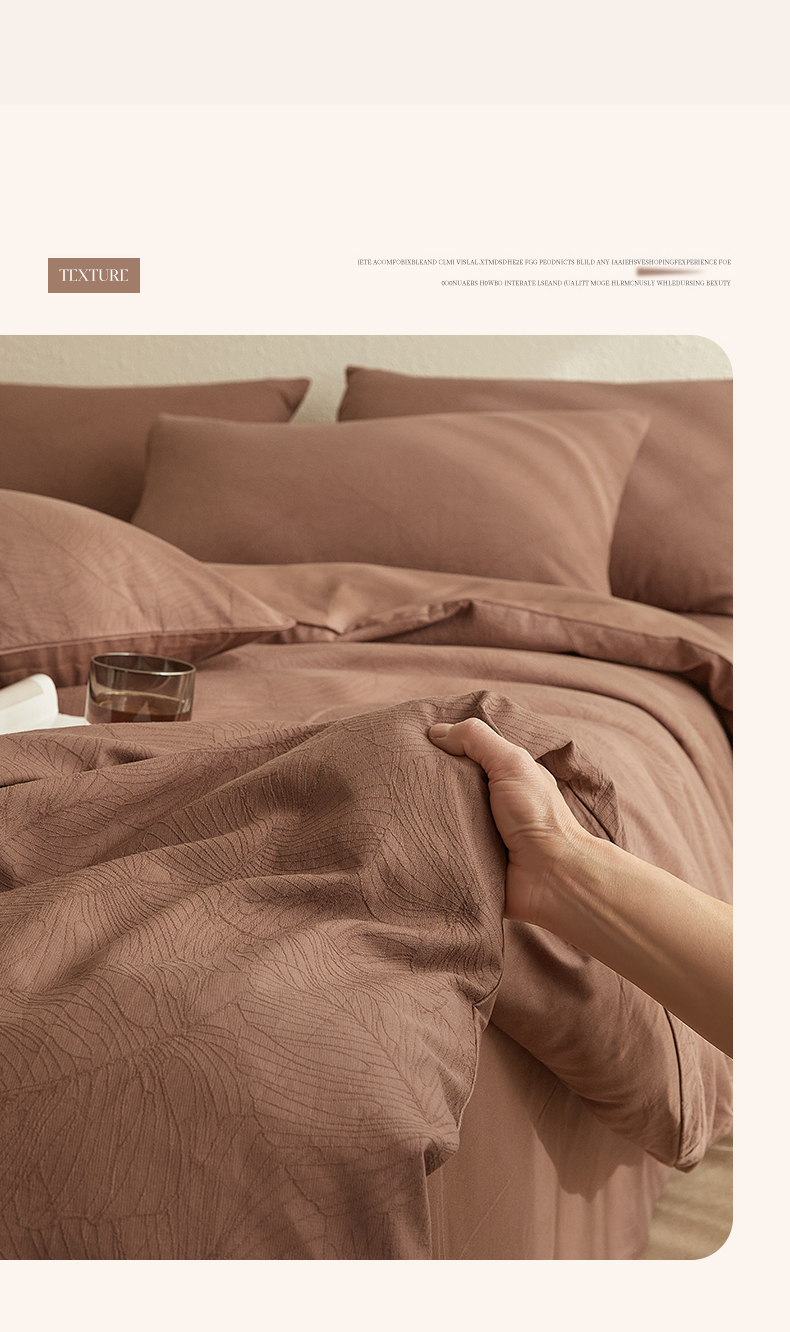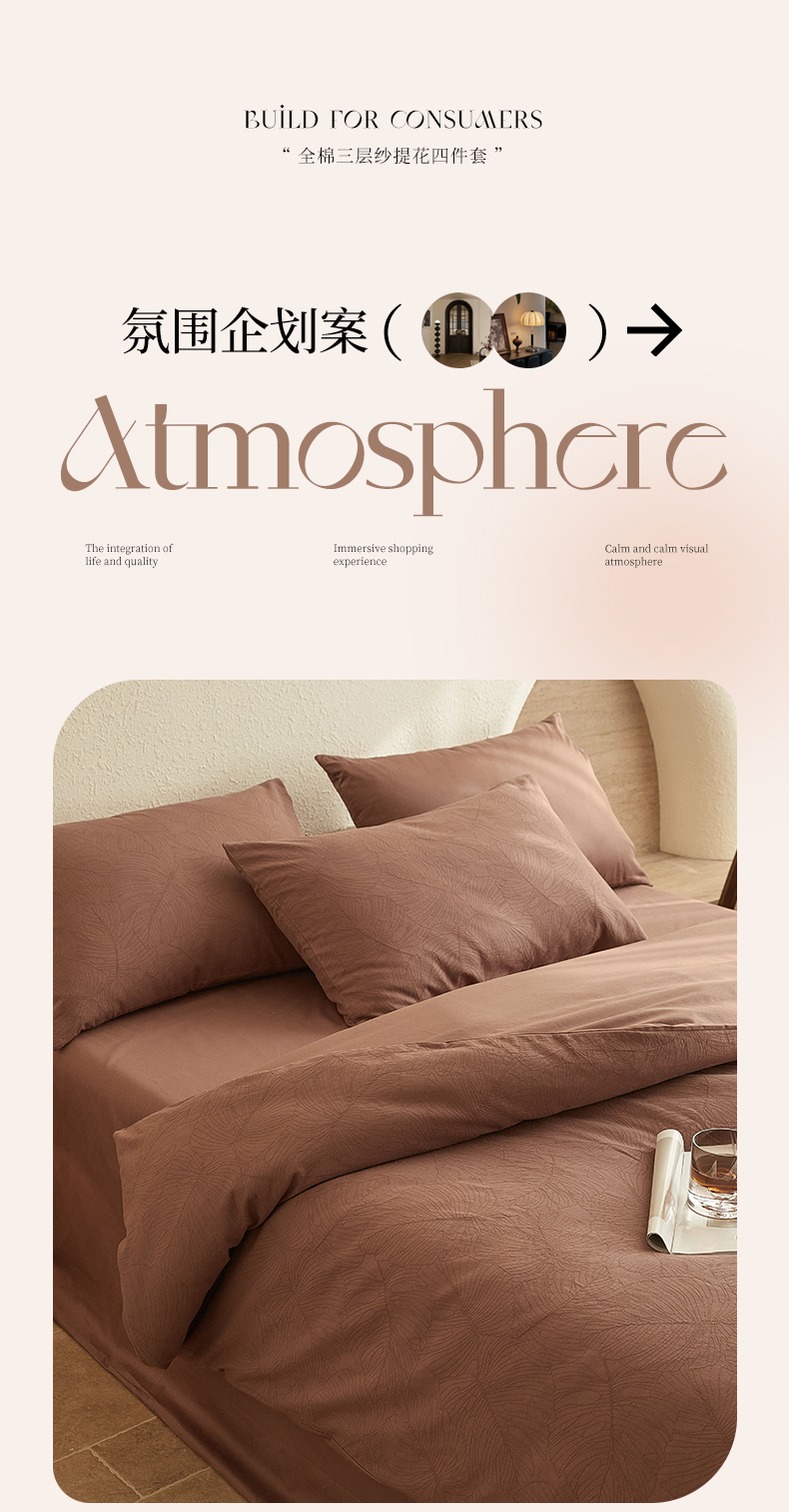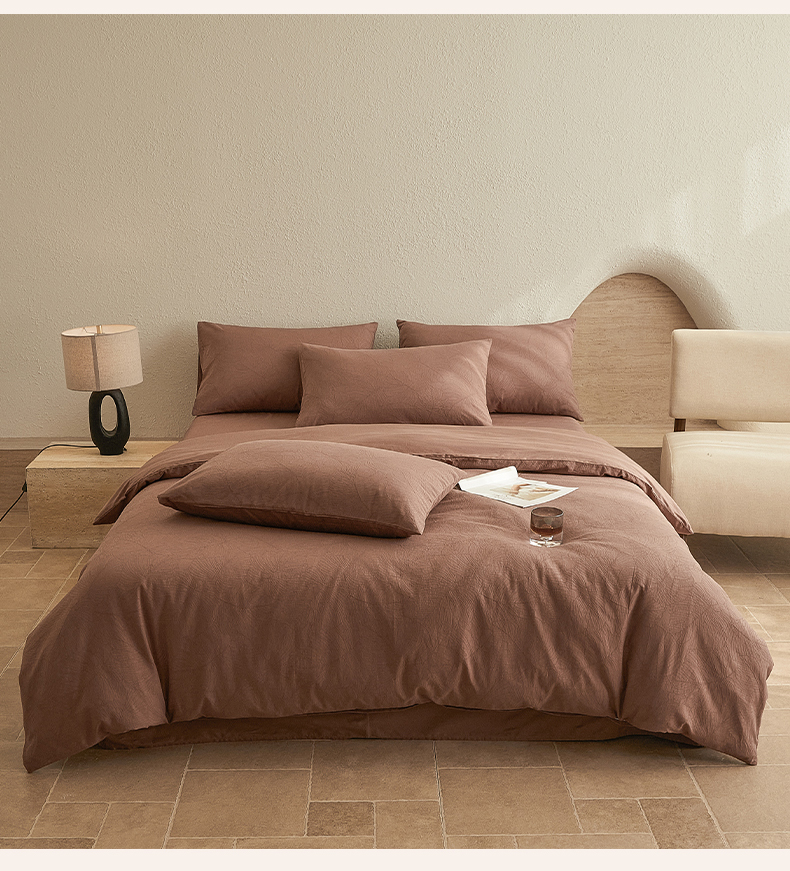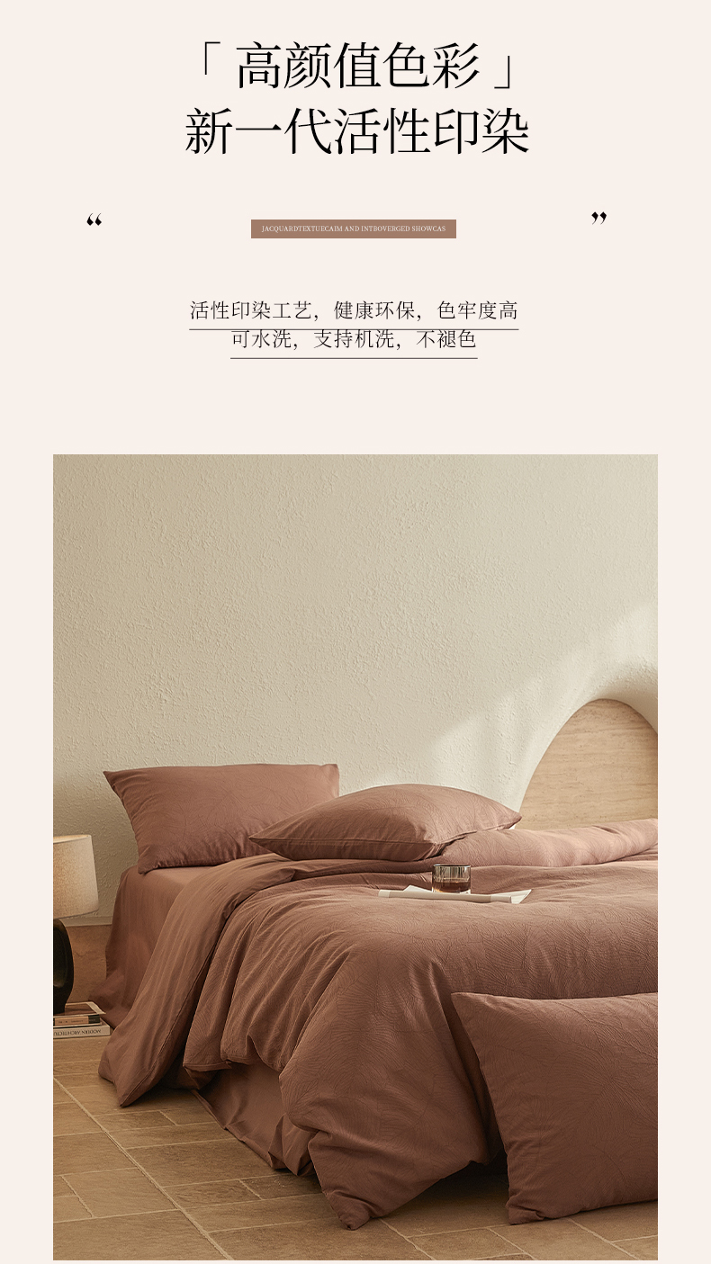 当前位置: 91家纺网 > 商品网购 > 床品套件 > 四件套 > 全棉普通四件套 > 2025新款全棉三层纱浮雕大提花四件套系列 春雨-红棕