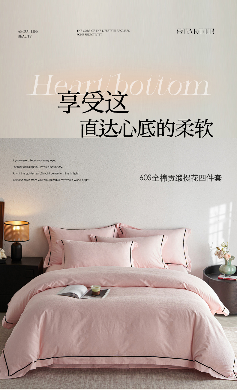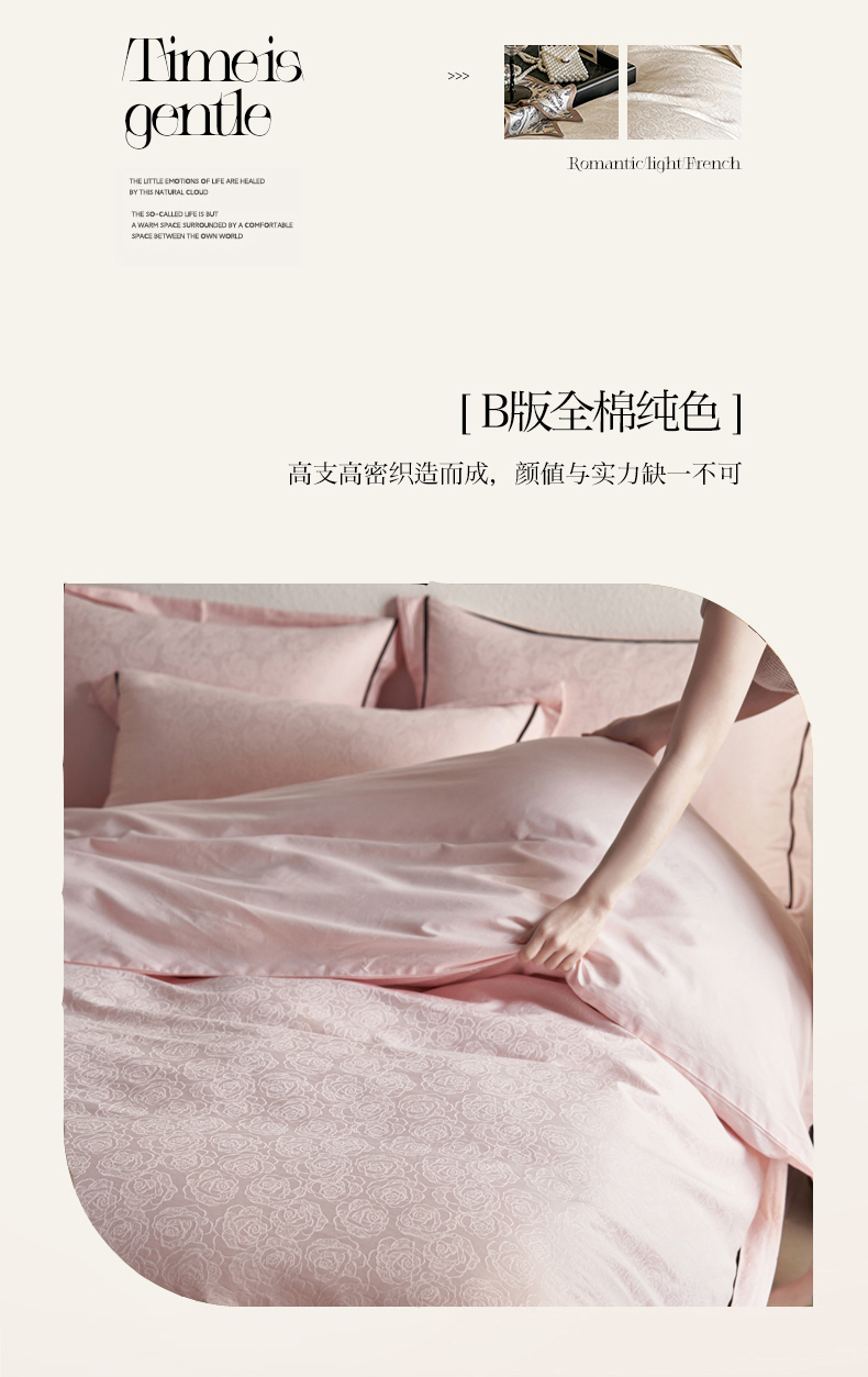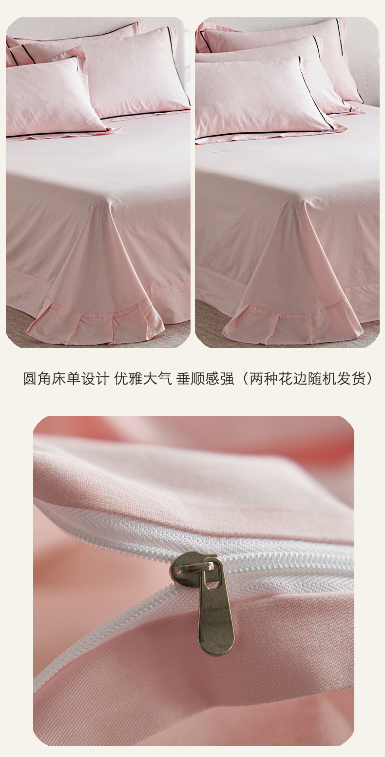 商品名称:三朵全棉60S贡缎长绒棉大提花四件套-花序系列 达西花园-粉