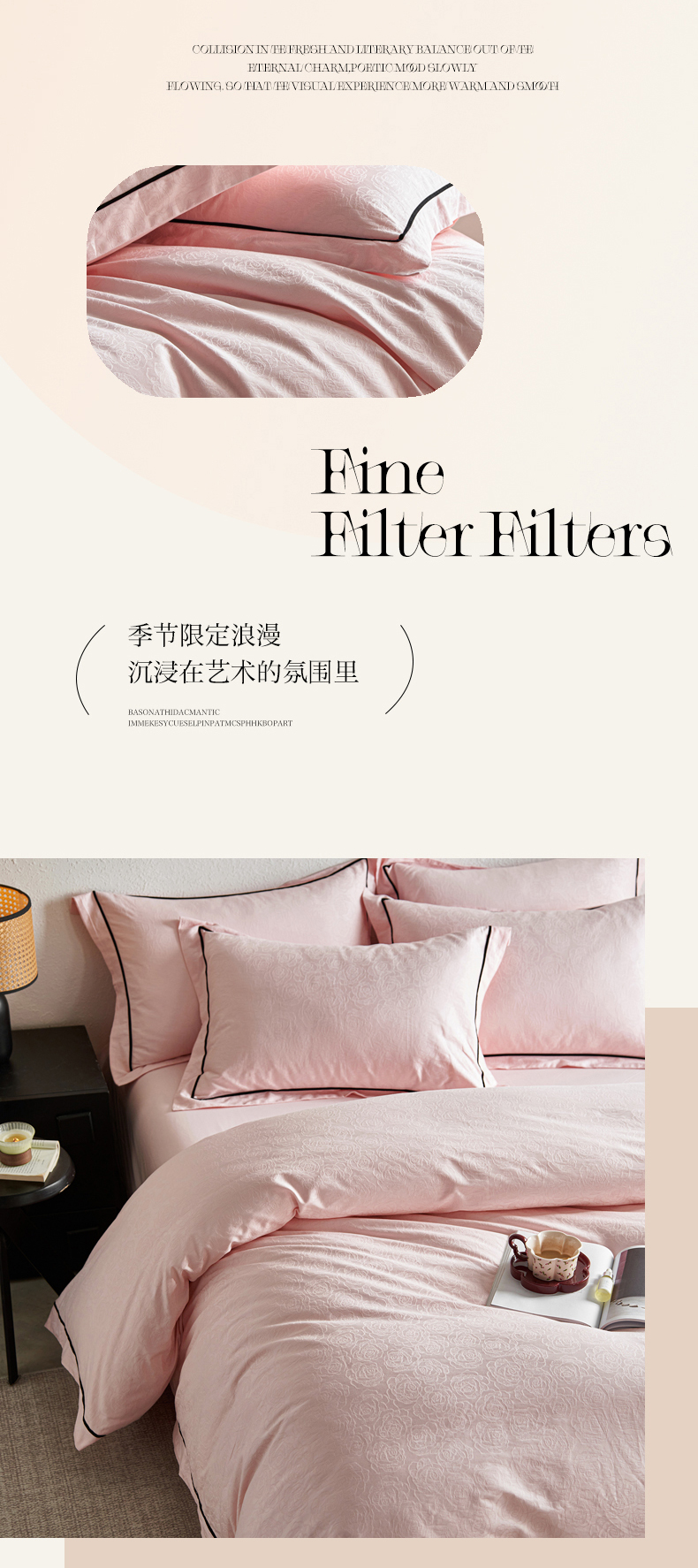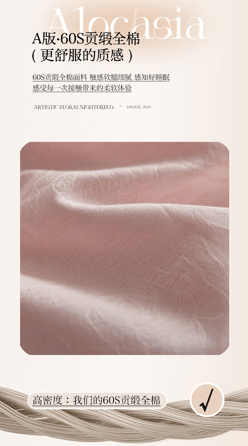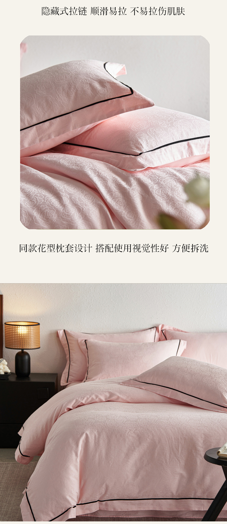 商品名称:三朵全棉60S贡缎长绒棉大提花四件套-花序系列 达西花园-粉