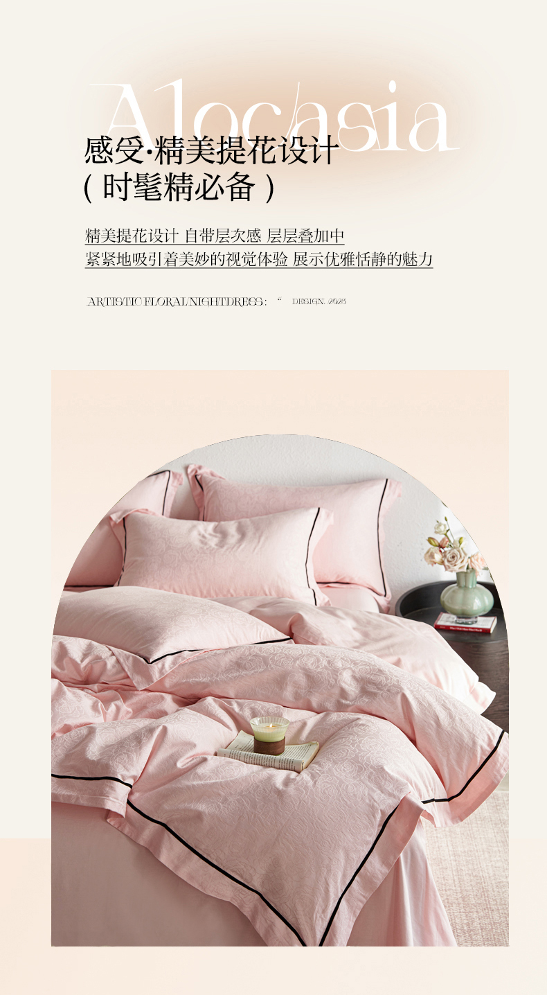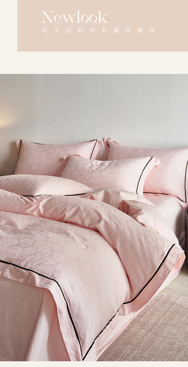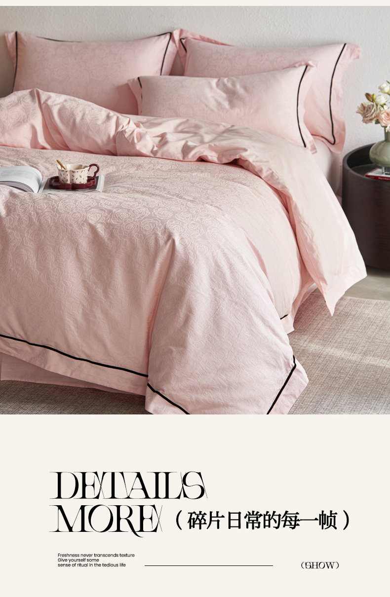 三朵全棉60S贡缎长绒棉大提花四件套-花序系列 达西花园-粉