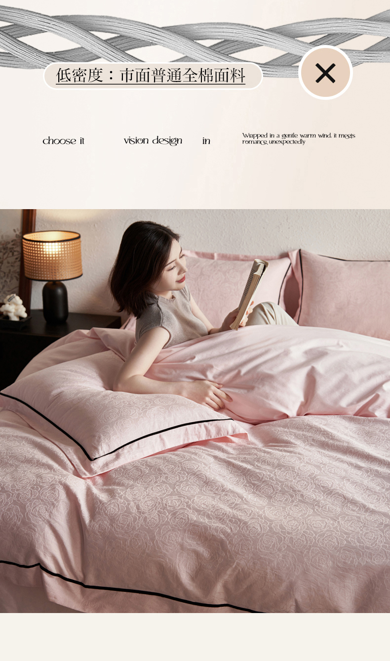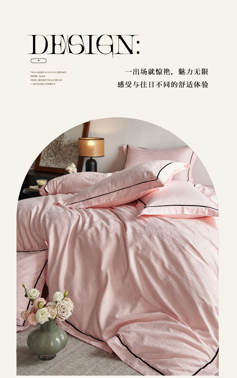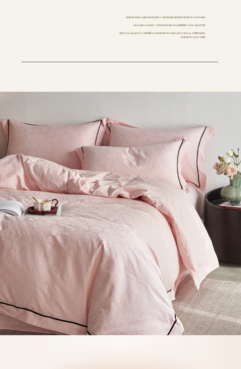 三朵全棉60S贡缎长绒棉大提花四件套-花序系列 达西花园-粉