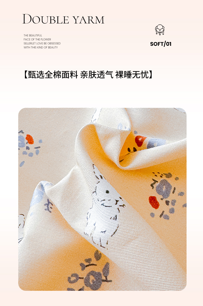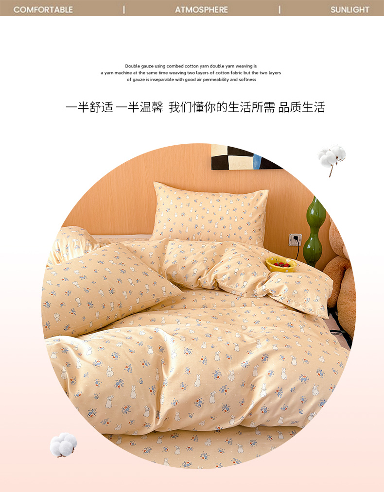 (总)感遇家纺 2025新款全棉纯棉千柔双层纱四件套,豹纹猫,豹纹猫粉,彩虹点点,风铃草,格子爱心咖,韩系蓝条,欢乐狗,蓝色小鱼,露娜,牛奶猫,青花瓷,轻奢小熊,盛夏,甜系少女,兔稚,紫樱猫语