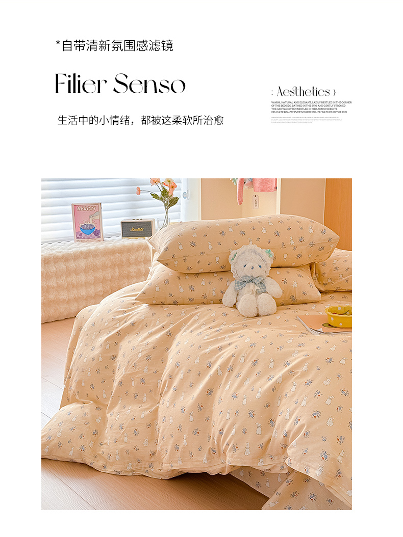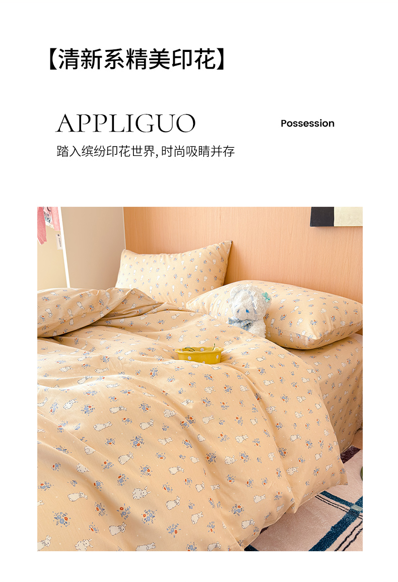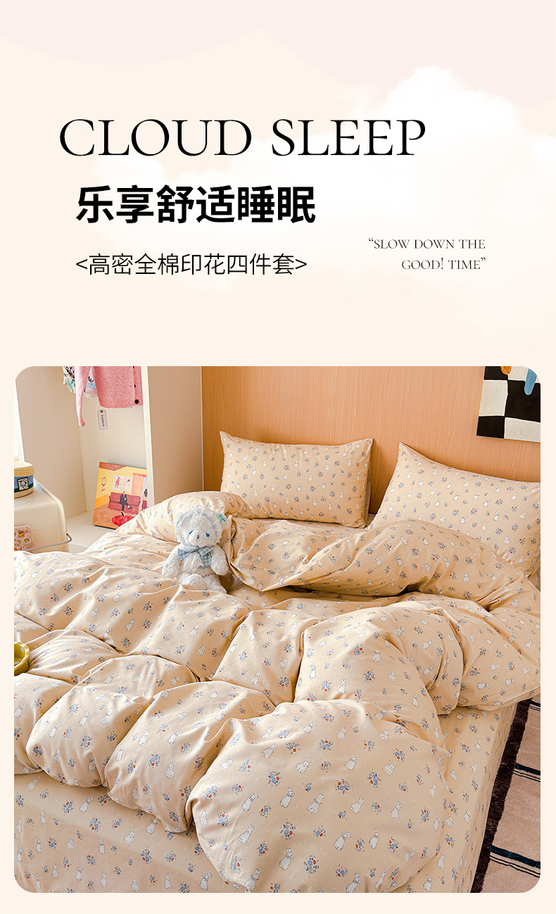 感遇全棉软萌清新四件套 开心兔子