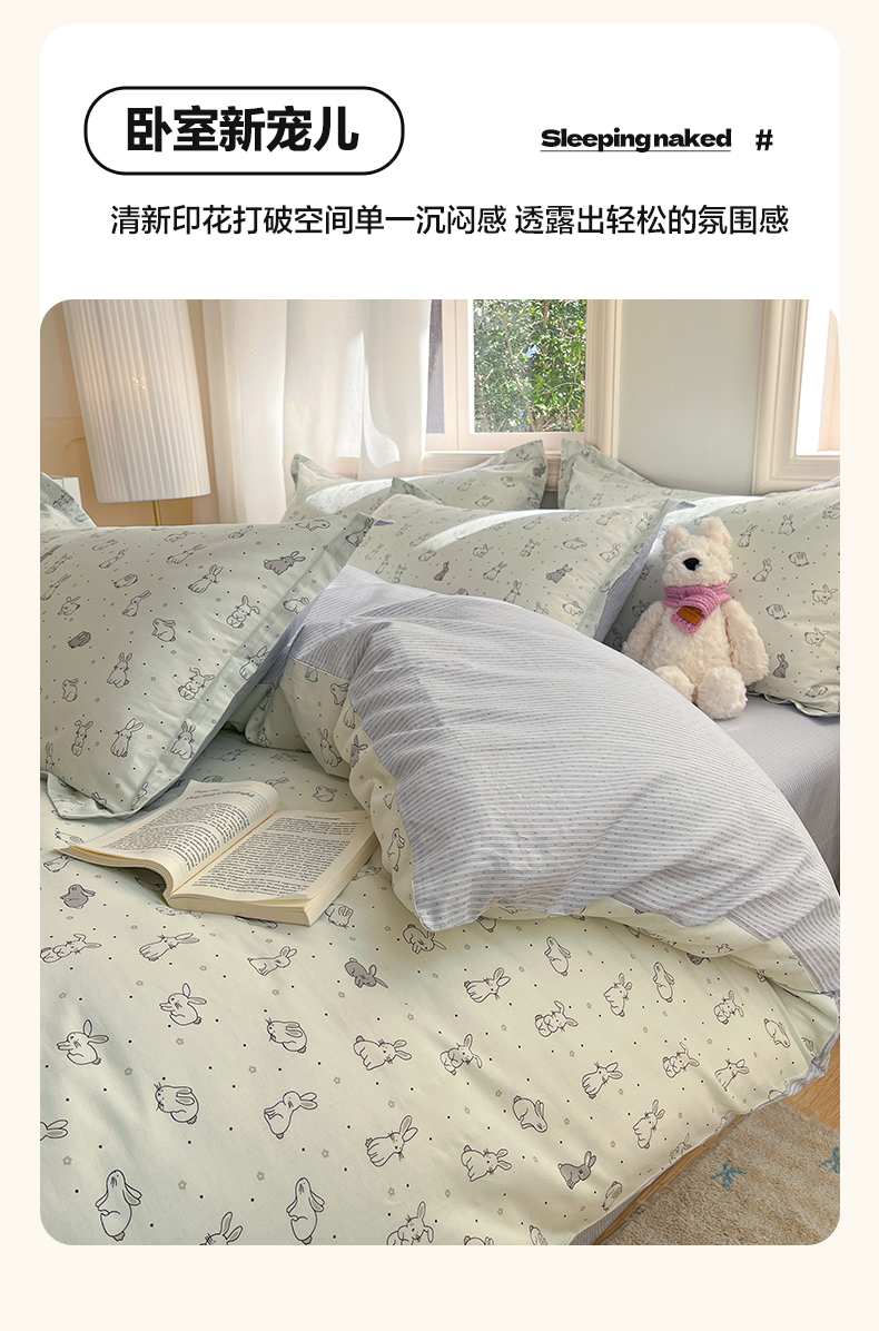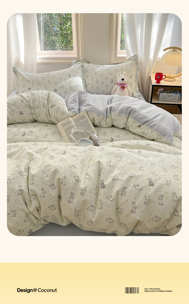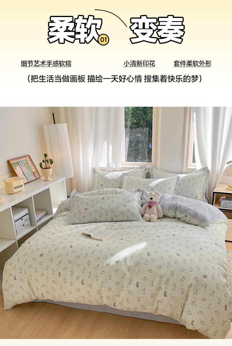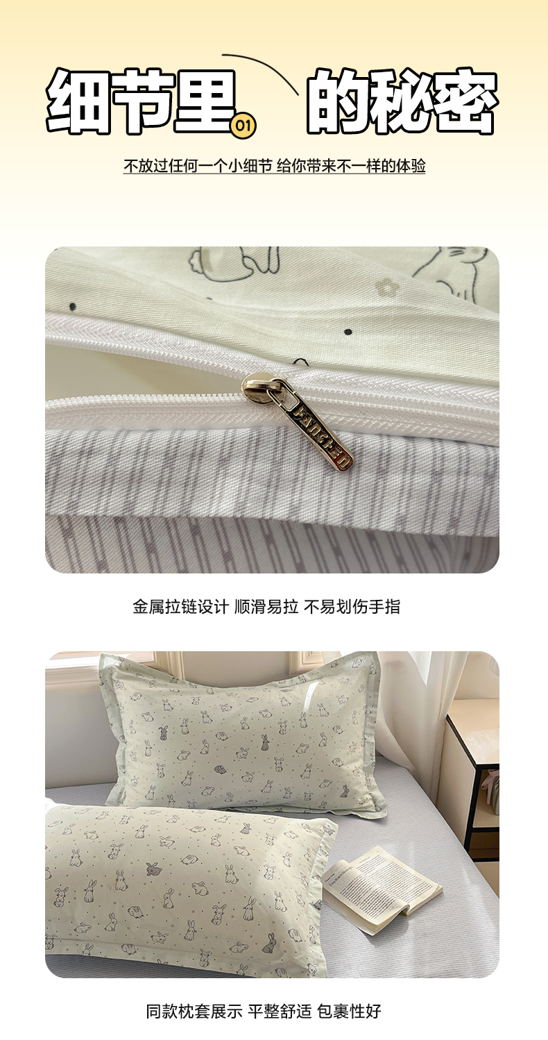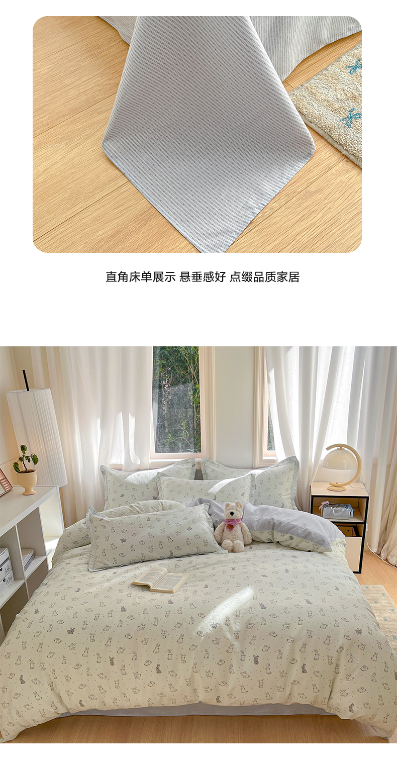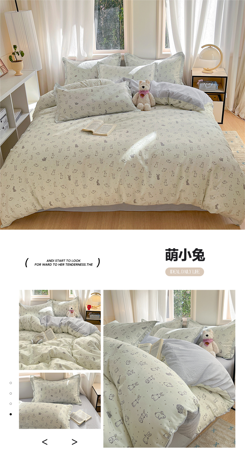 当前位置: 91家纺网 > 商品网购 > 床品套件 > 四件套 > 全棉普通四件套 > 涵宸家纺 2025新款全棉印花四件套 B萌小兔