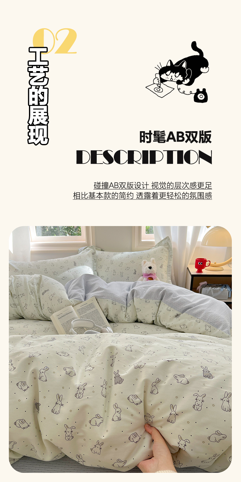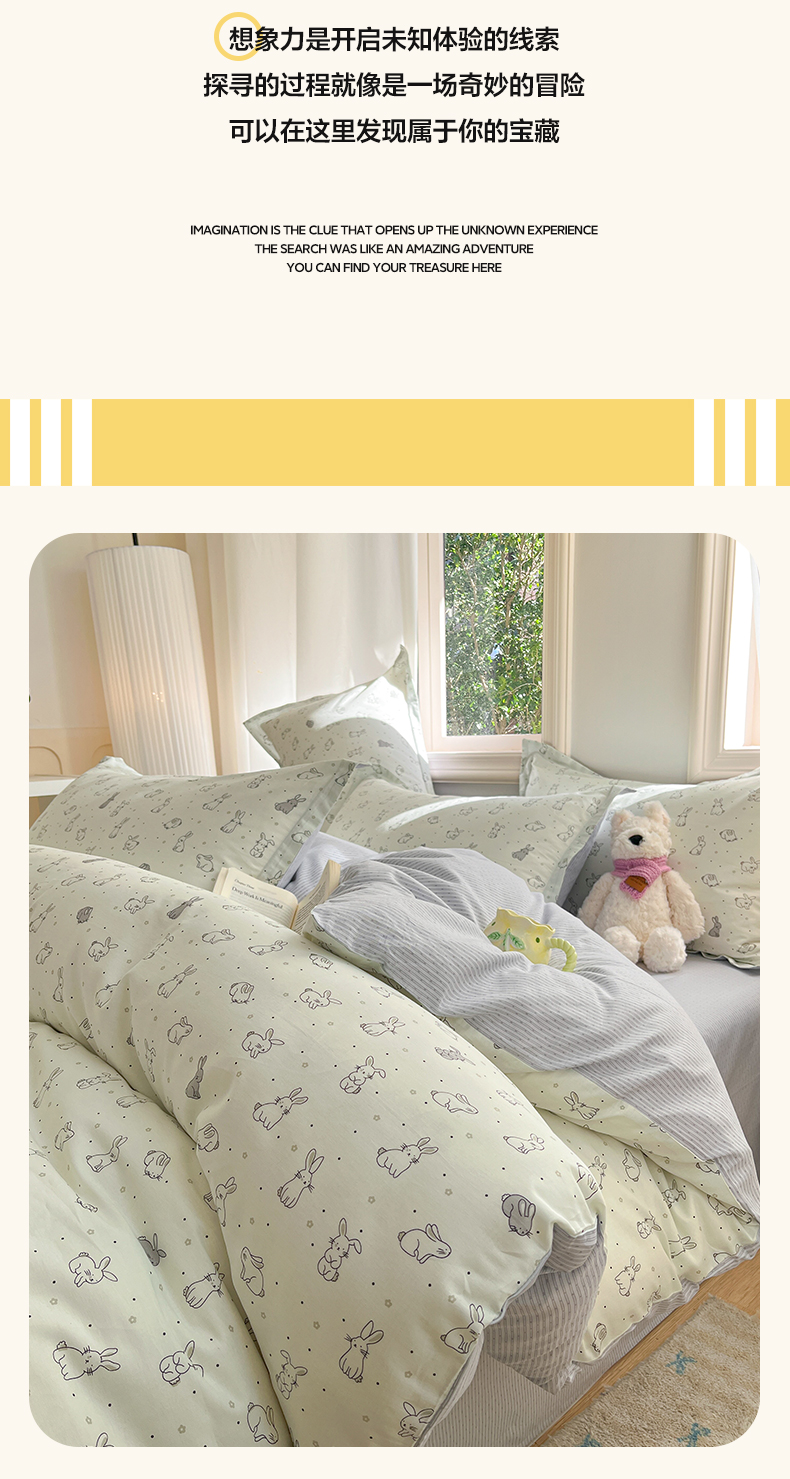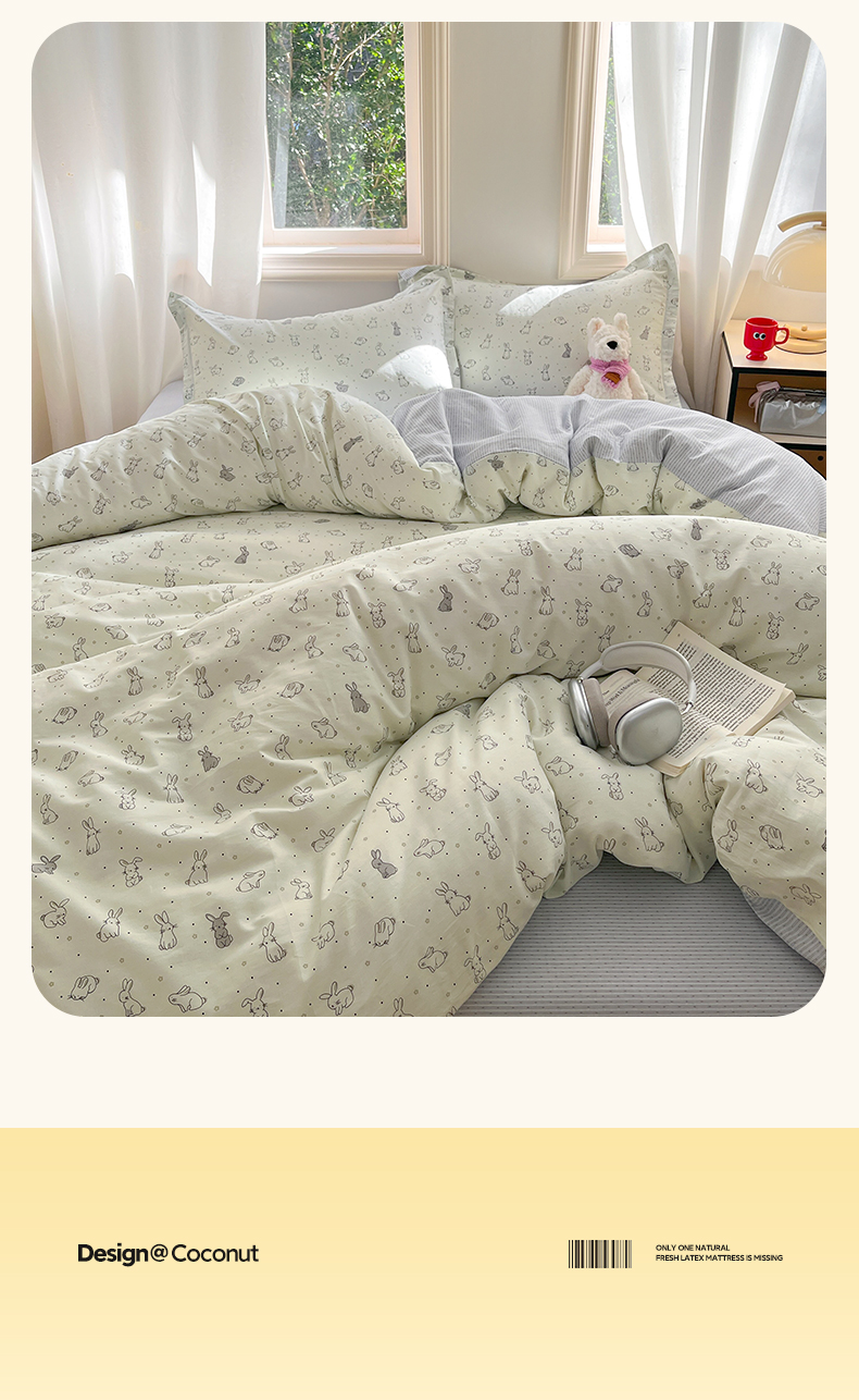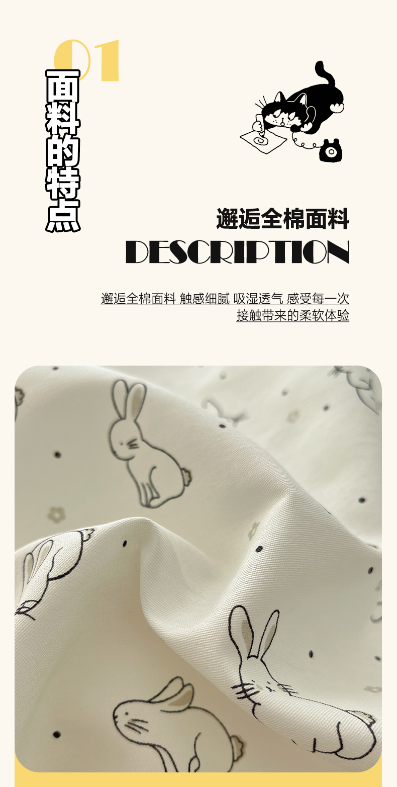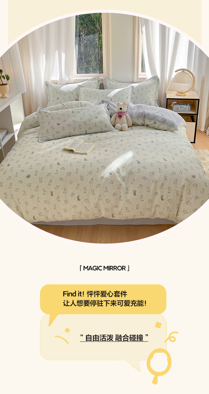 当前位置: 91家纺网 > 商品网购 > 床品套件 > 四件套 > 全棉普通四件套 > 涵宸家纺 2025新款全棉印花四件套 B萌小兔
