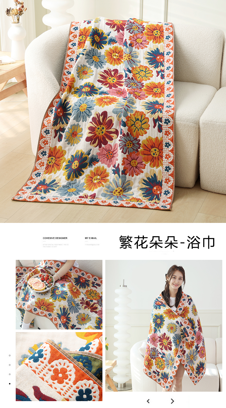 商品名称:(总)朴尔2025年新品国潮风加大加厚全棉六层纱布浴巾四件套