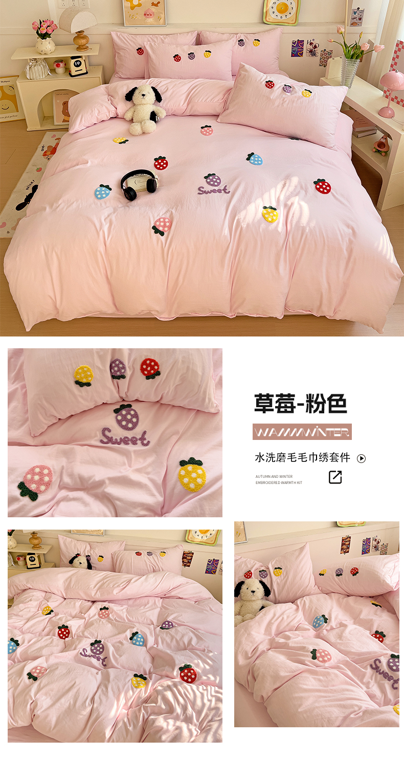 当前位置: 91家纺网 > 商品网购 > 床品套件 > 四件套 > 水洗棉四件套 > 逸尚阁 2025新款小清新毛巾绣四件套(提供买家秀) 草莓-樱花粉