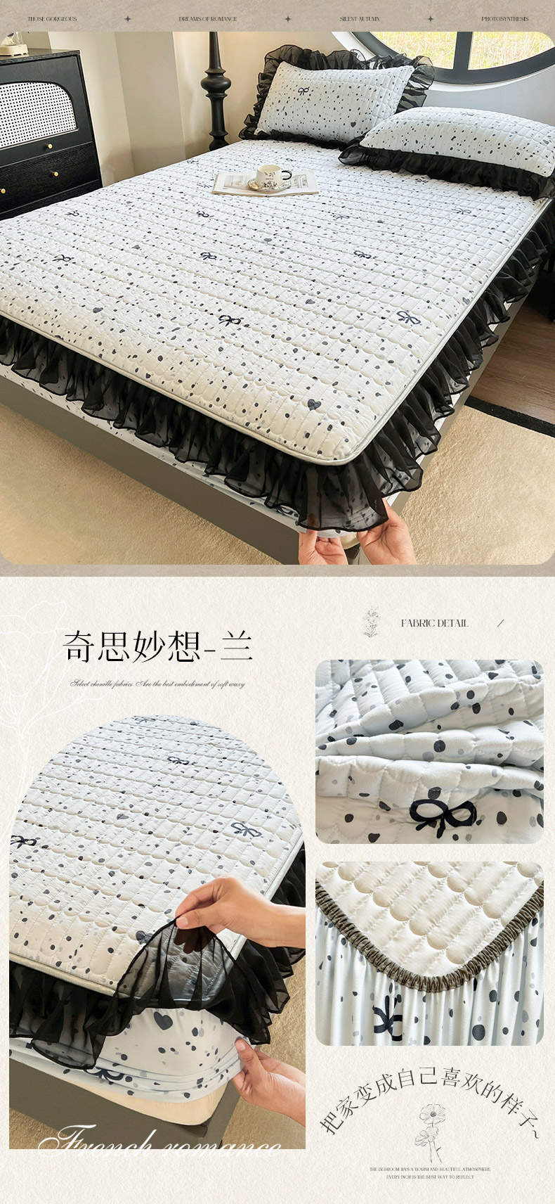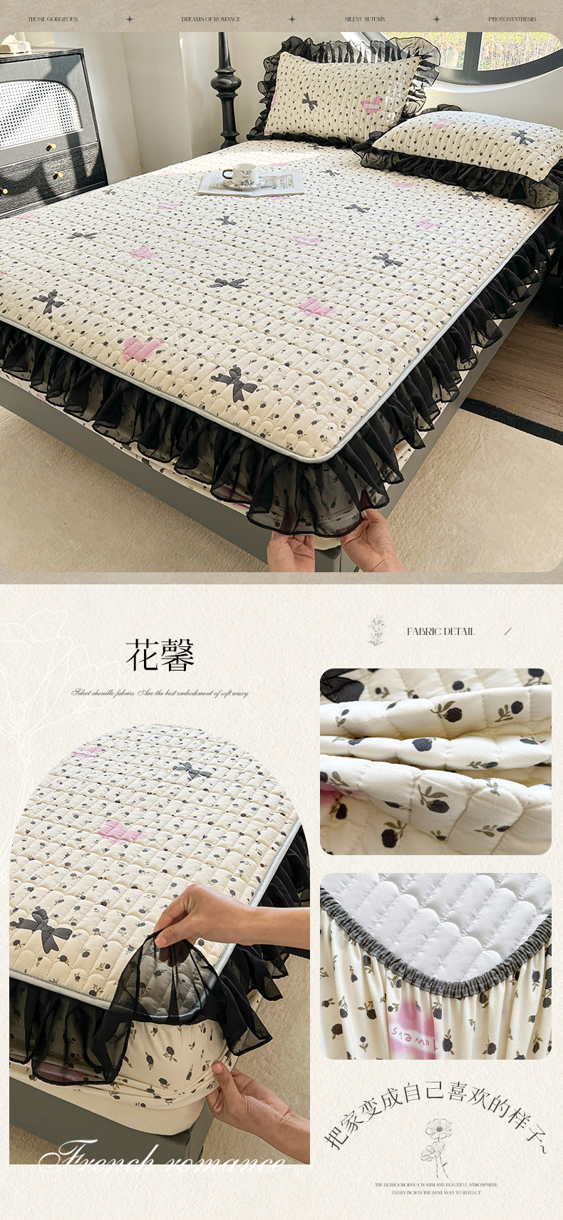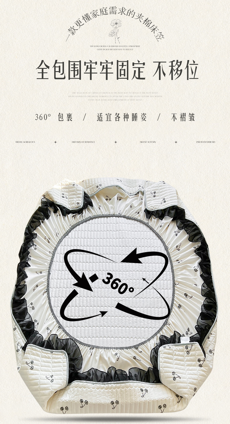 • 91家纺网 家纺一手货源 找家纺 眠势力 2025新款赫本风花边床笠四季通用加厚夹棉席梦思保护套 曼妙花恋