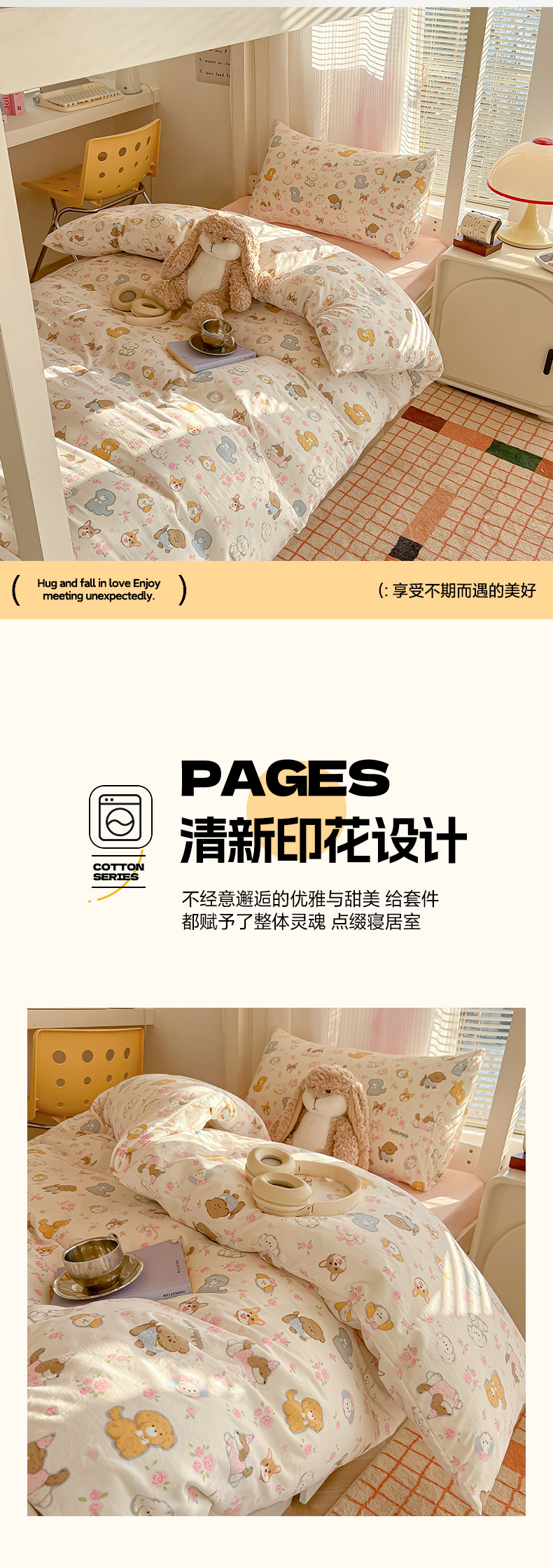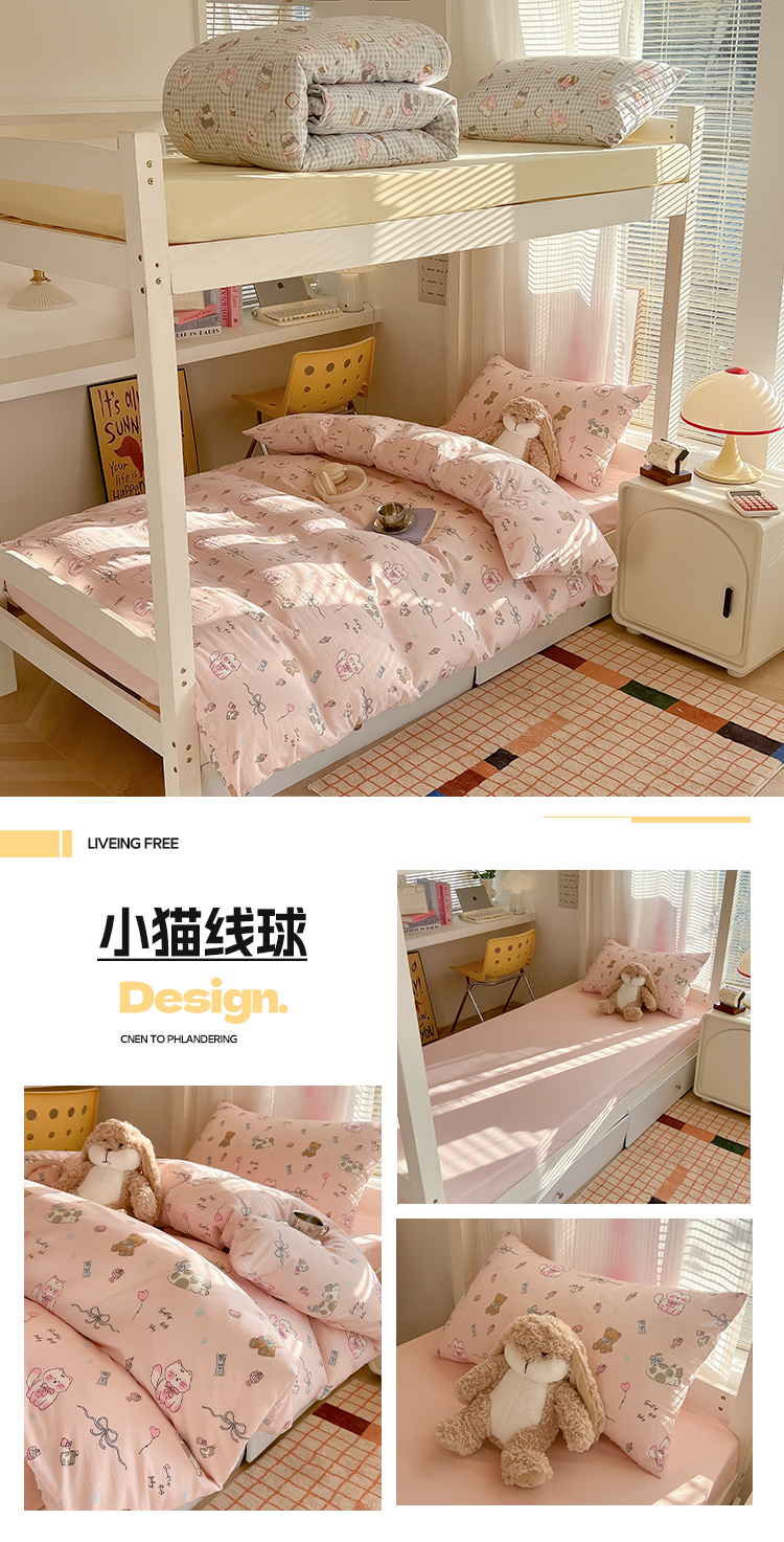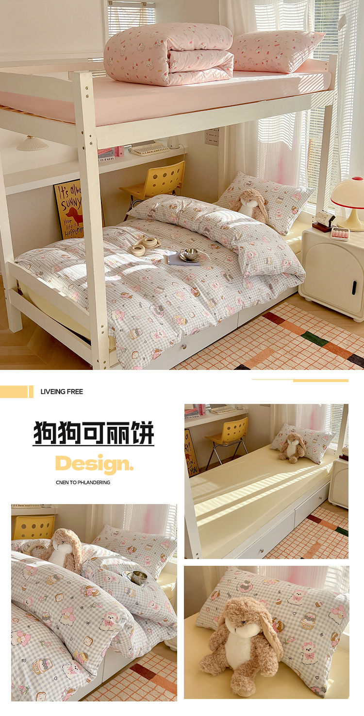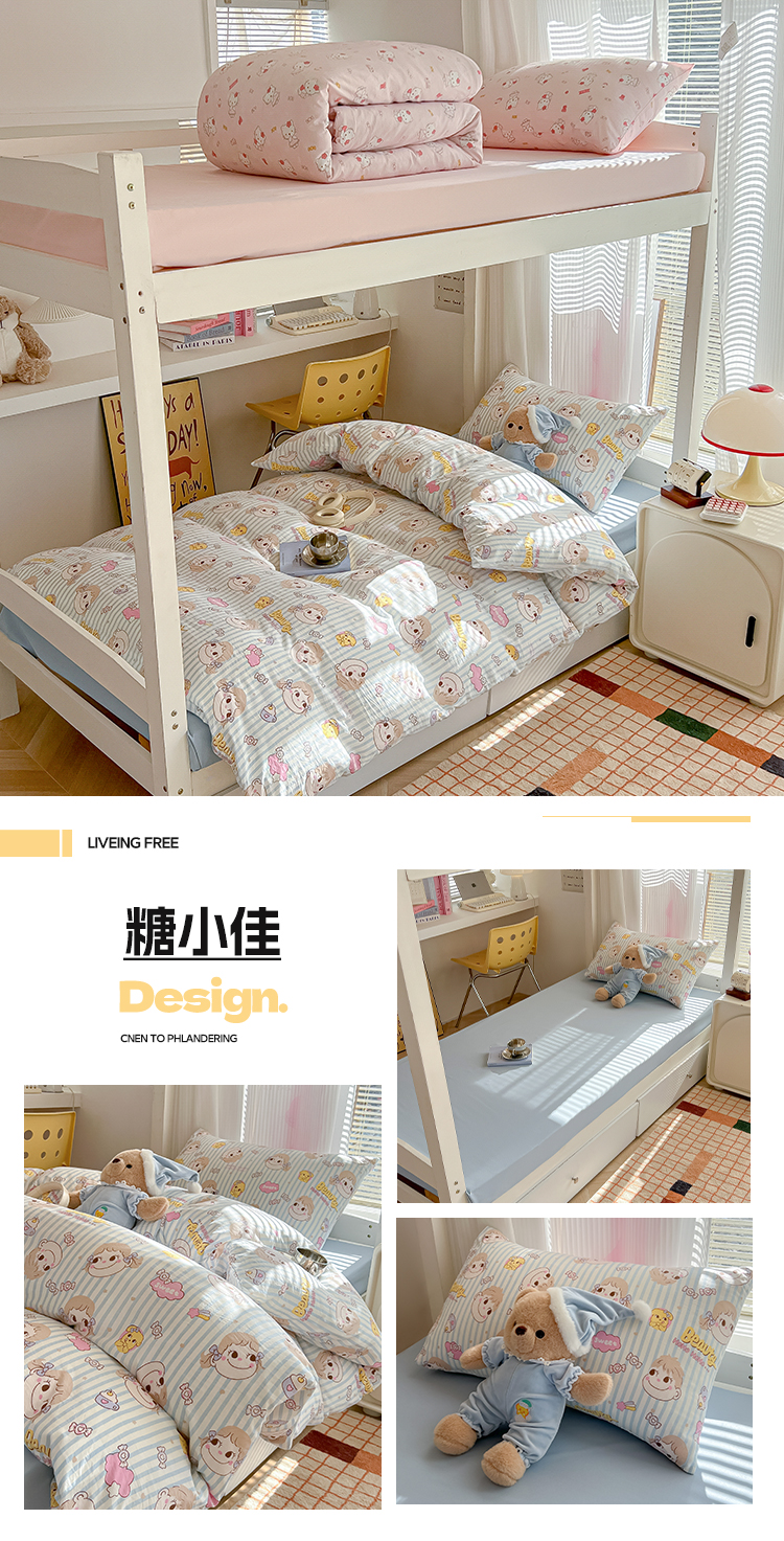 商品名称:(总)韩巢家纺 2025新款超柔水洗棉学生宿舍寝室被套床单三件套