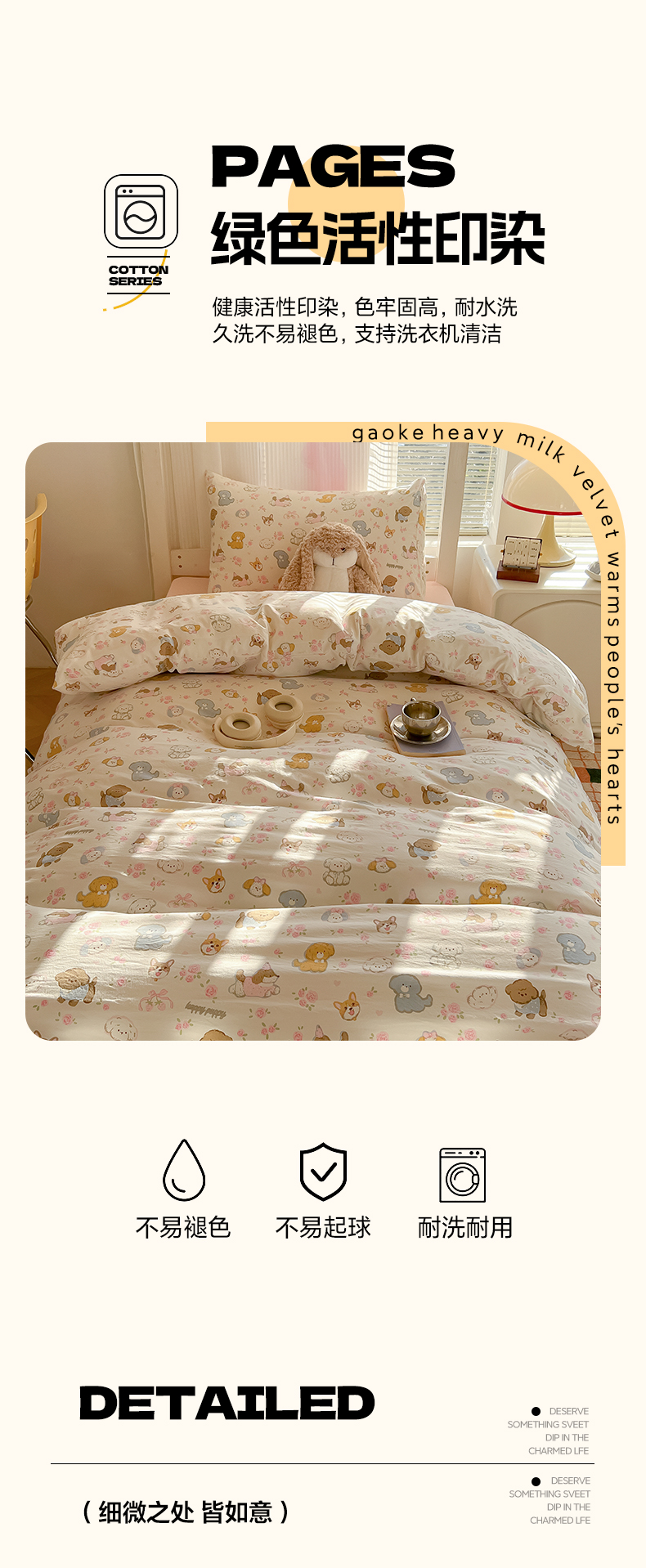 韩巢家纺 2025新款高克重印花牛奶绒床品四件套 田园小花,田园小花