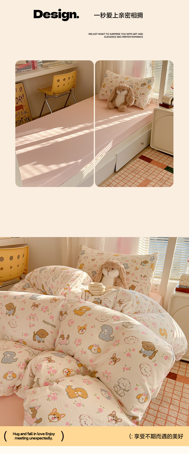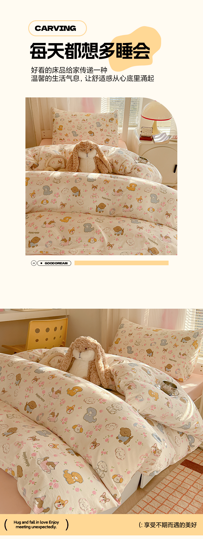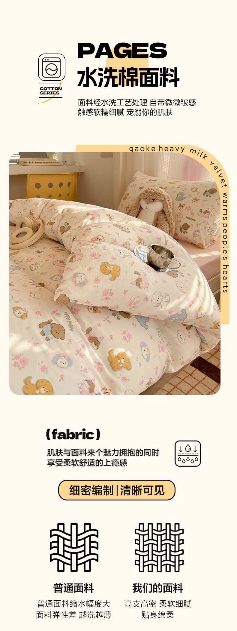 (总)韩巢家纺 2025新款水洗棉大花边被套四件套直播热销款学生宿舍被罩床单三件套(提供卖家秀),春日与玫瑰【大花边款】,繁花似梦【大花边款】,花时宇间【大花边款】,灰蒙小狗【大花边款】,久期诗朵-黄【大花边款】,可可腊肠犬【大花边款】,奶油樱桃【大花边款】,软糖猫【大花边款】,甜樱恋曲【大花边款】,温暖粉心【大花边款】,小花野-紫【大花边款】,小熊冰淇淋【大花边款】,星梦蝶结【大花边款】,幸运可爱兔【大花边款】,摘樱桃的小熊【大花边款】