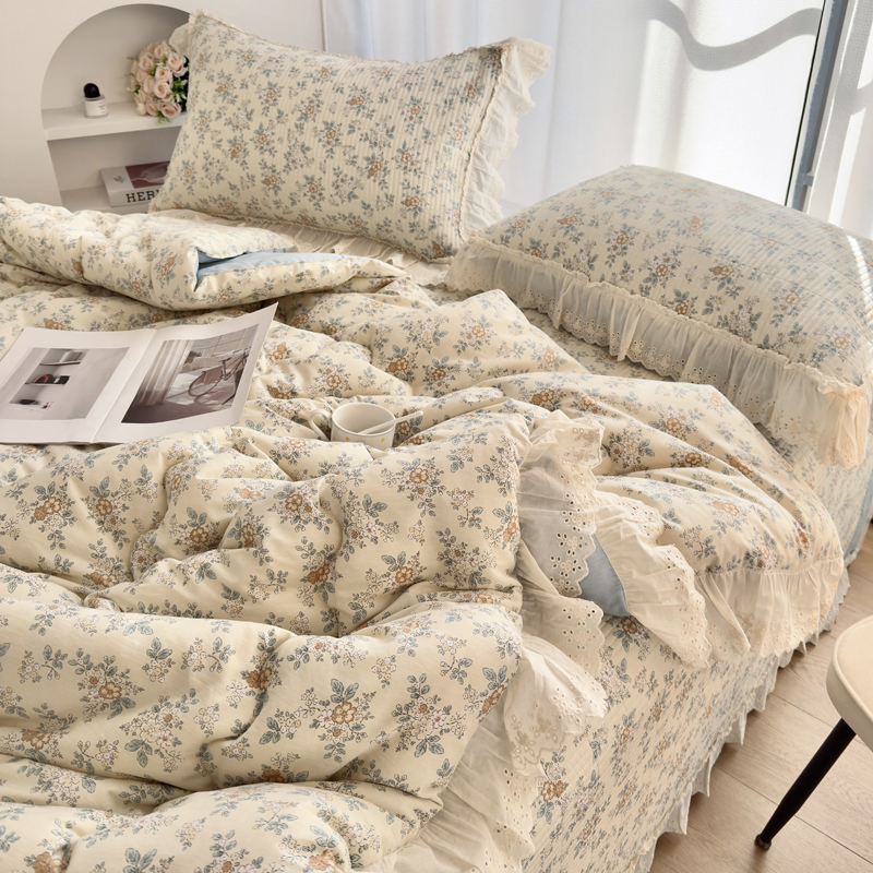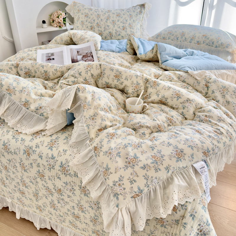 • 91家纺网 家纺一手货源 找家纺 尊妙被业 2025春夏新款全棉纯棉印花法式花边春秋被可机洗 四叶草-绿