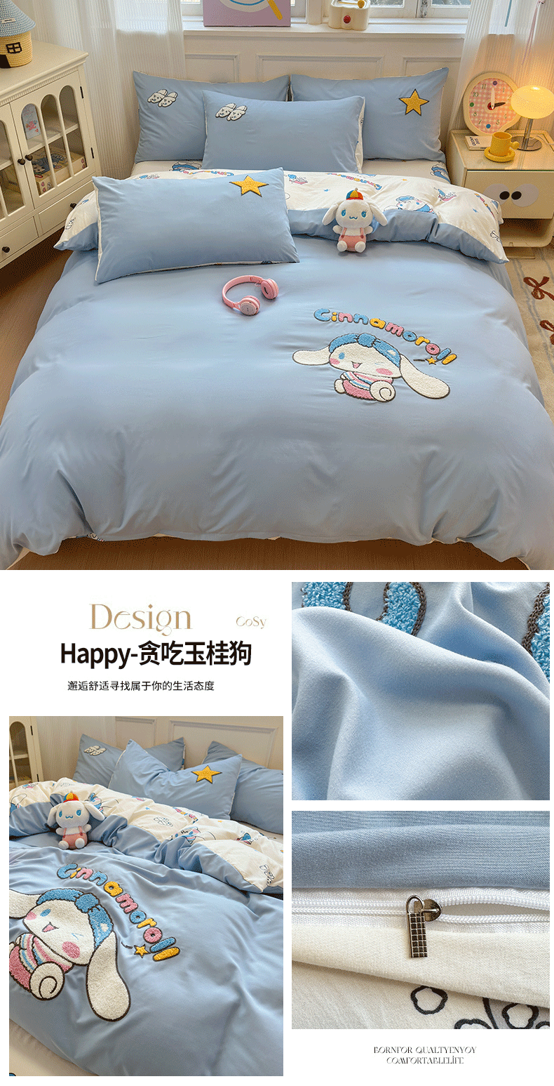 当前位置: 91家纺网 > 商品网购 > 床品套件 > 四件套 > 水洗棉四件套 > 贝扬思家纺 2025新款水洗棉三丽鸥happy系列四件套 Happy-贪吃玉桂狗