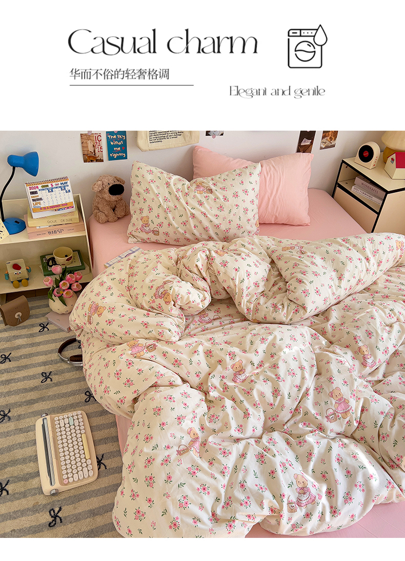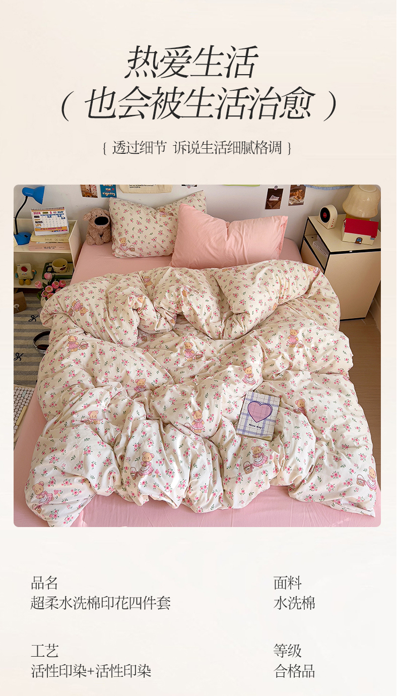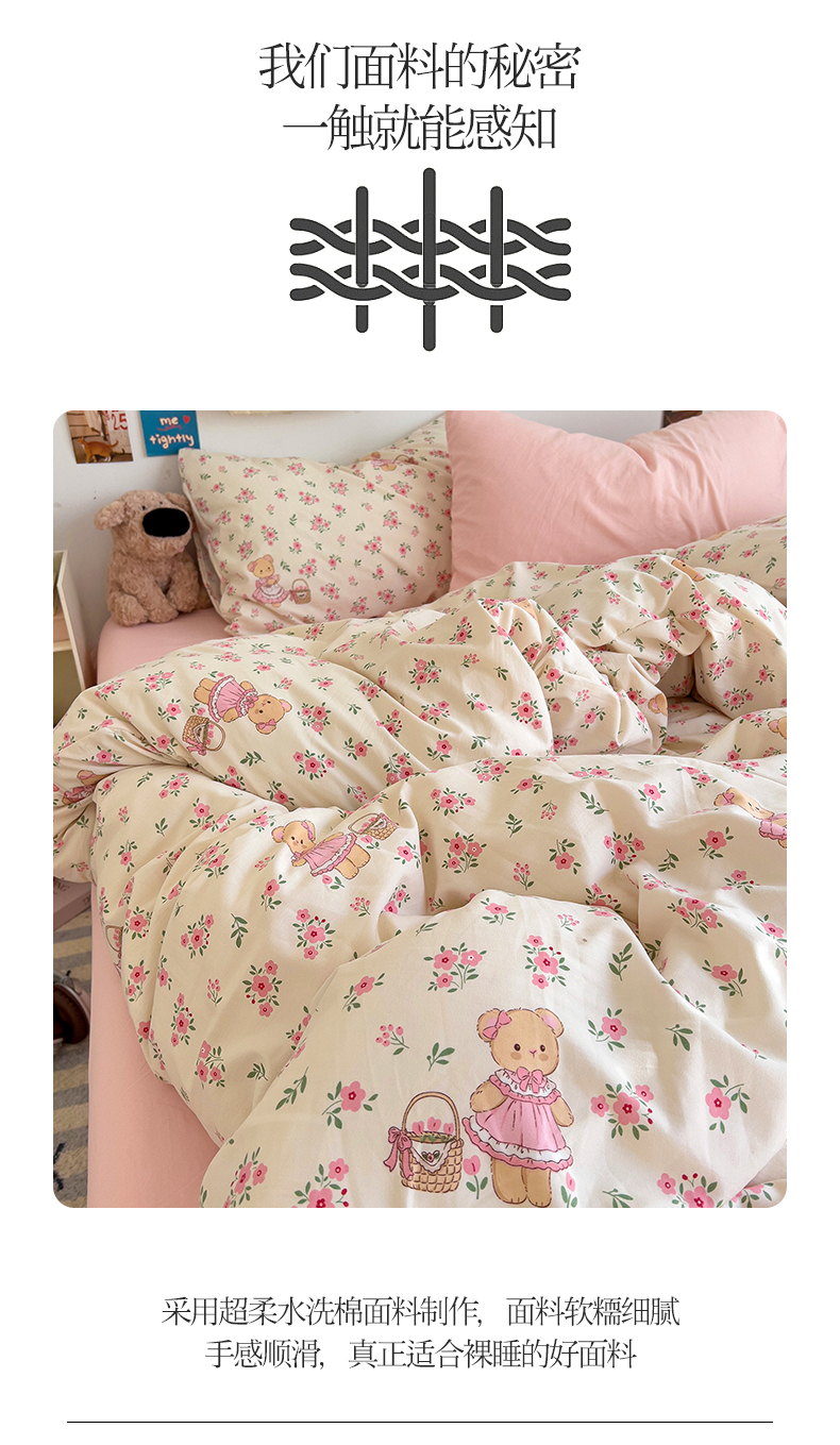 当前位置: 91家纺网 > 商品网购 > 床品套件 > 四件套 > 水洗棉四件套 > 水墨江南 2025新款超柔水洗棉系列四件套 花间小熊