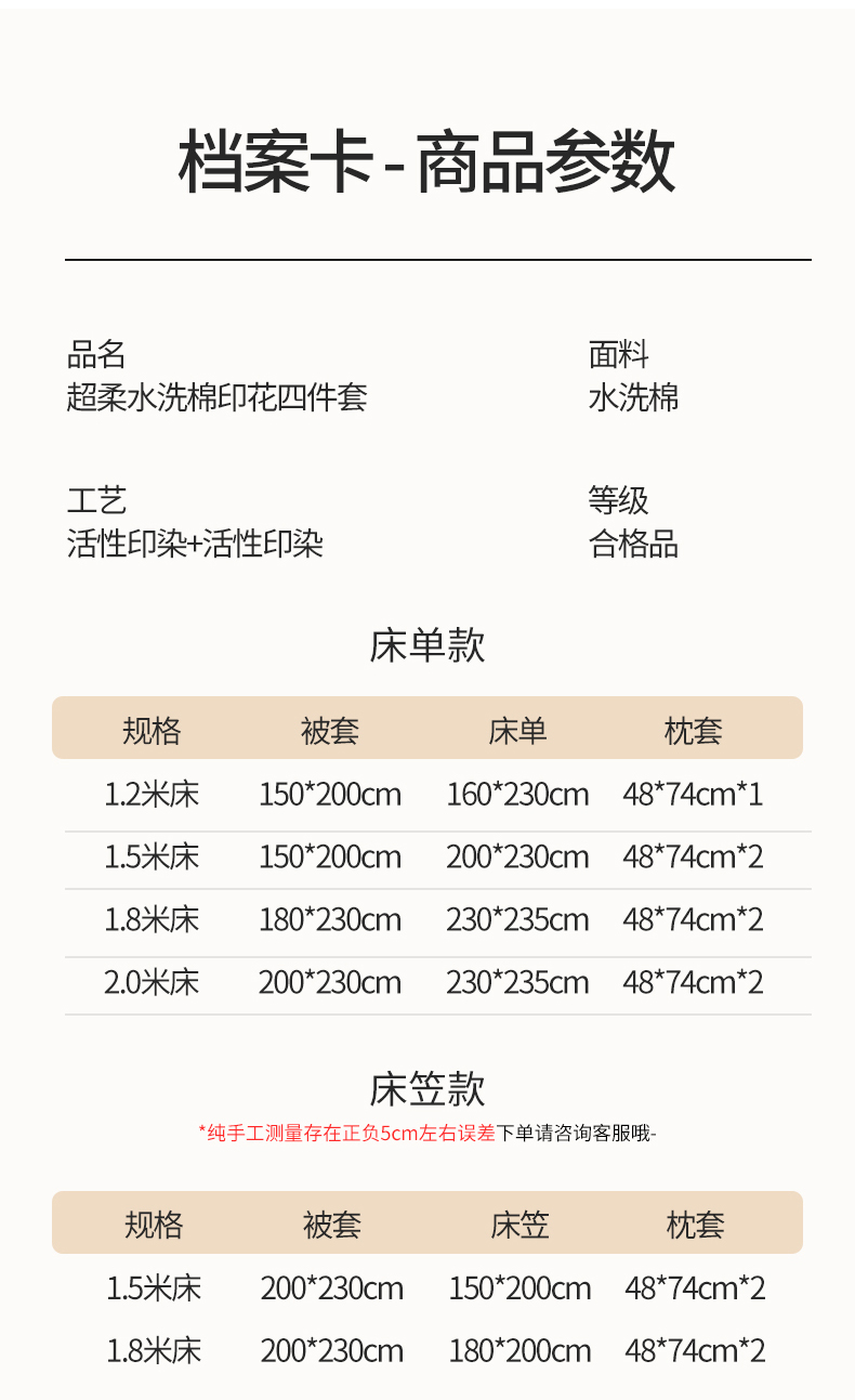1.8m床笠款四件套(被套200*230cm) | ¥55.00 |