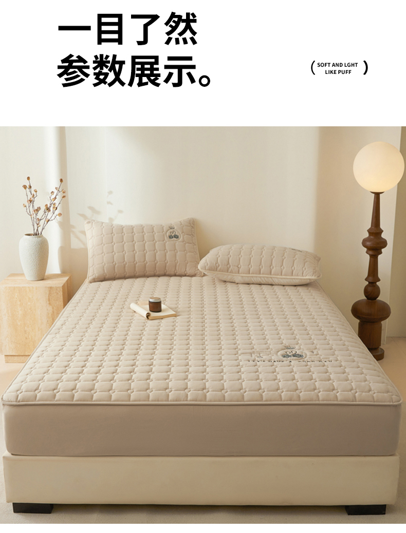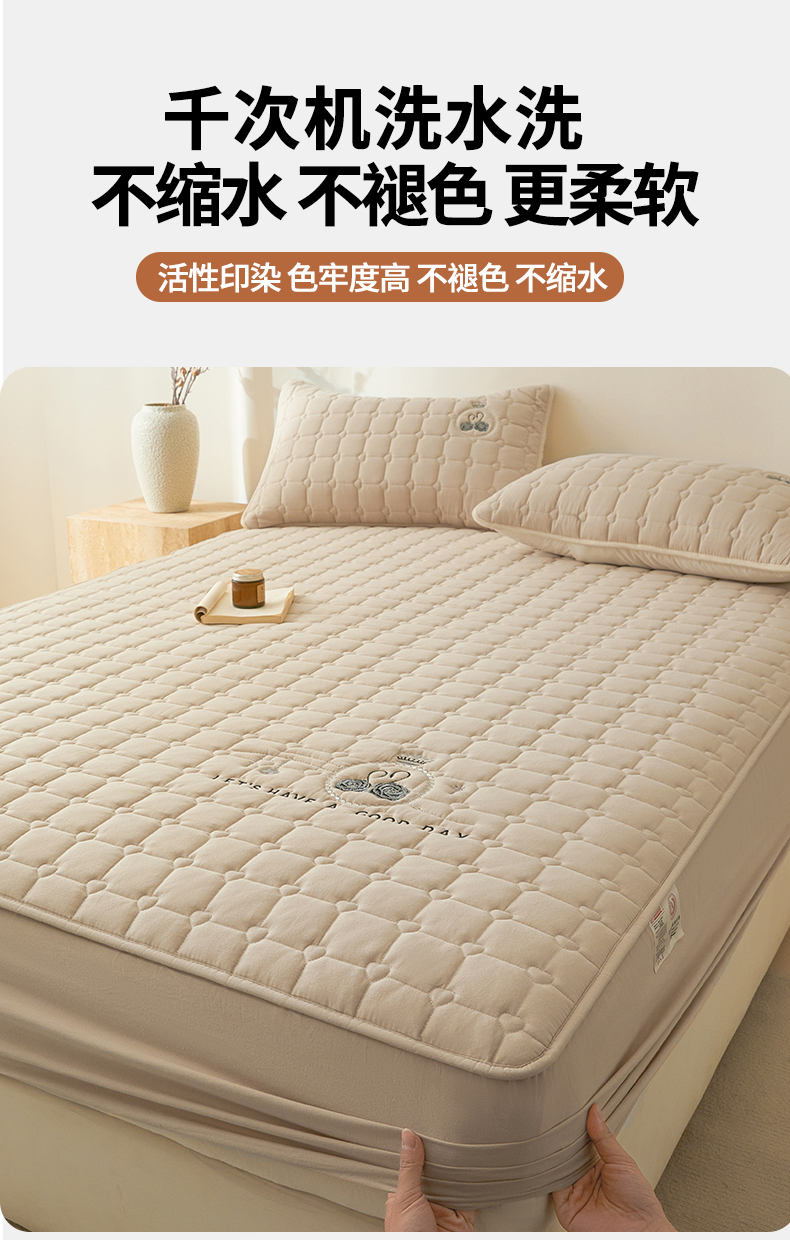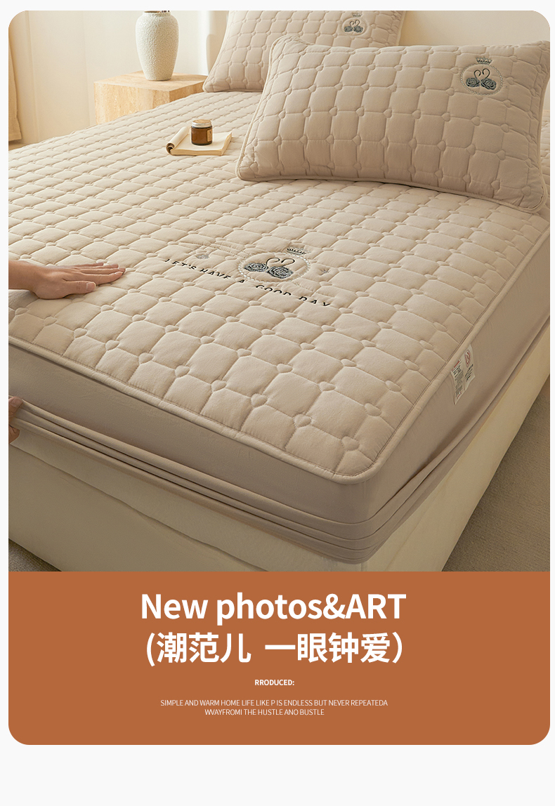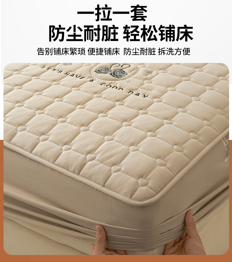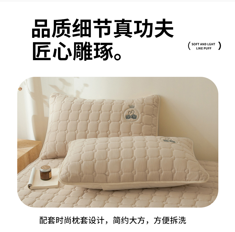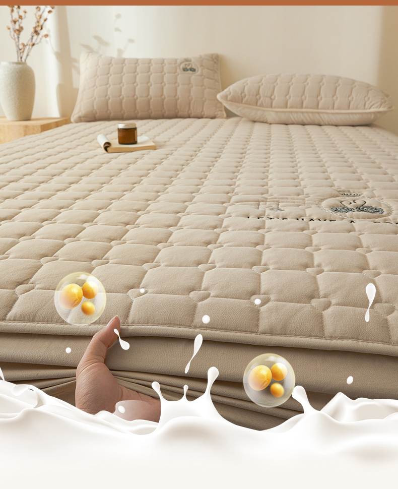 • 91家纺网 家纺一手货源 找家纺 鑫钰2025新款刺绣加厚夹棉床笠--小天鹅 小天鹅-香槟驼