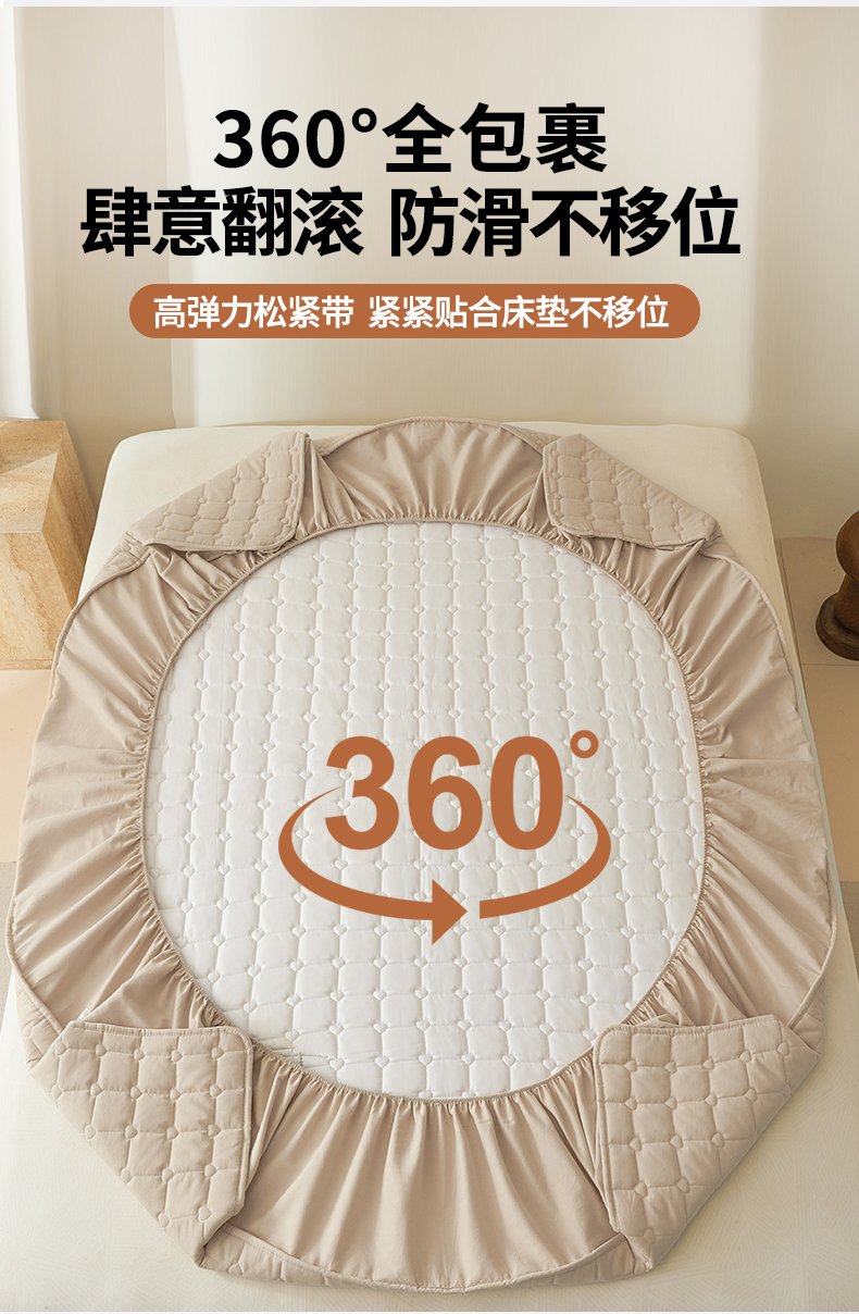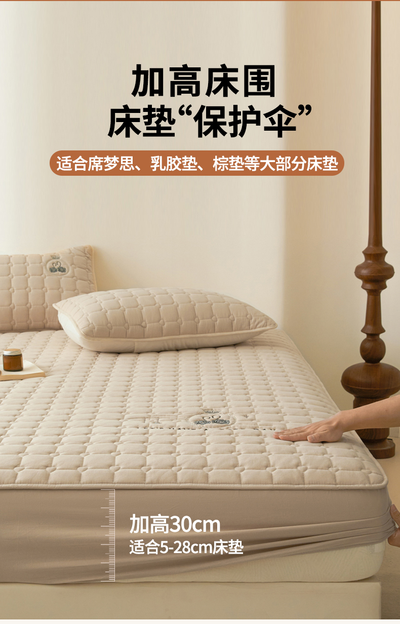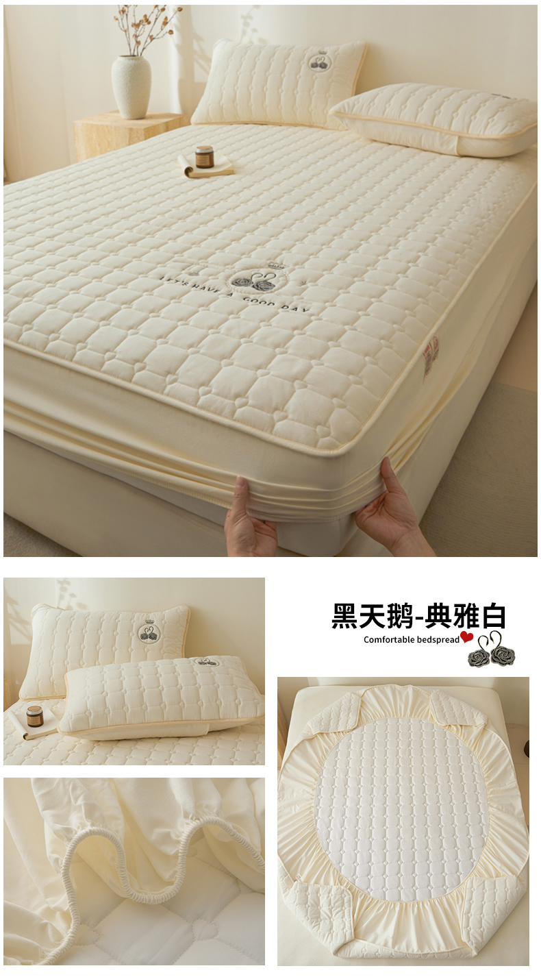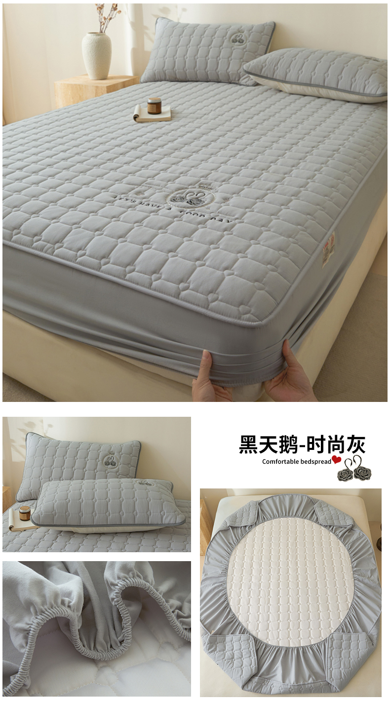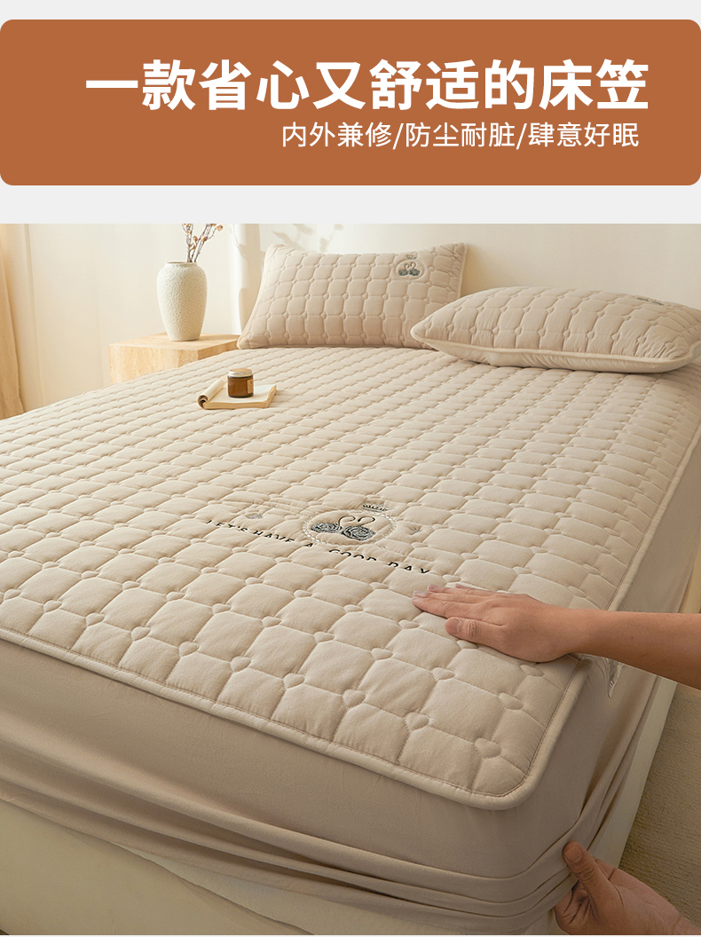 • 91家纺网 家纺一手货源 找家纺 鑫钰2025新款刺绣加厚夹棉床笠--小天鹅 小天鹅-香槟驼
