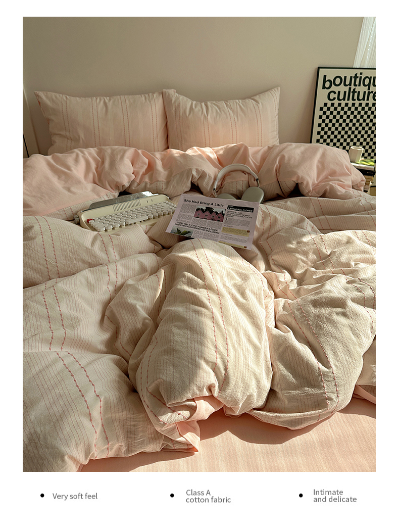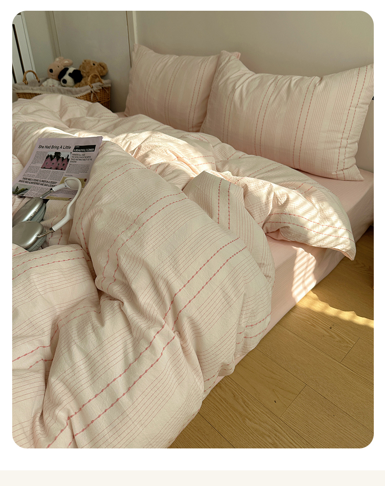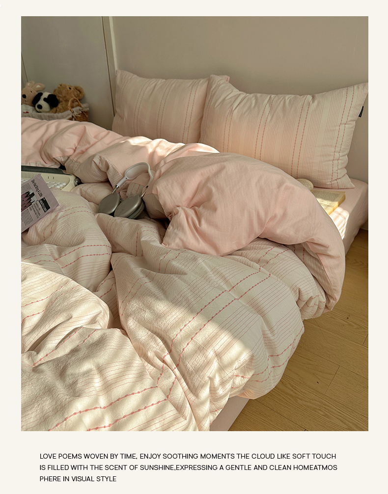 当前位置: 91家纺网 > 商品网购 > 床品套件 > 四件套 > 全棉普通四件套 > 蜜宿2025新款全棉色织提花四件套-清梦星河系列 清梦星河-粉