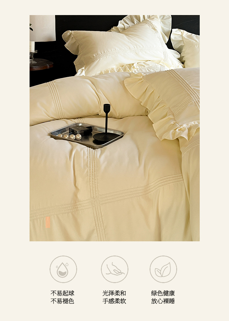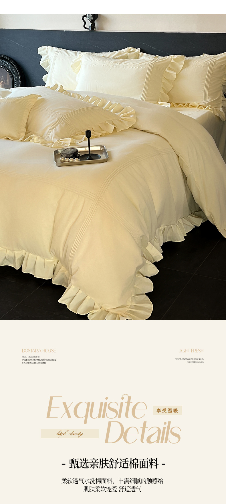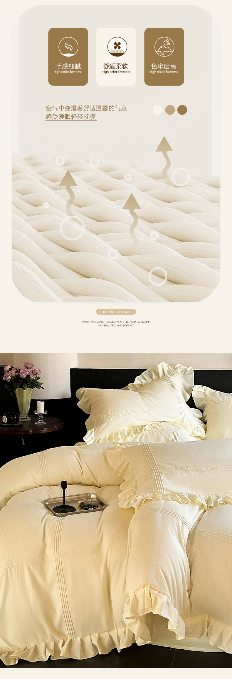 当前位置: 91家纺网 > 商品网购 > 床品套件 > 四件套 > 其它四件套 > 豪美鑫 2025新款柔肤棉刺绣公主风琳卡系列四件套 琳卡-米黄