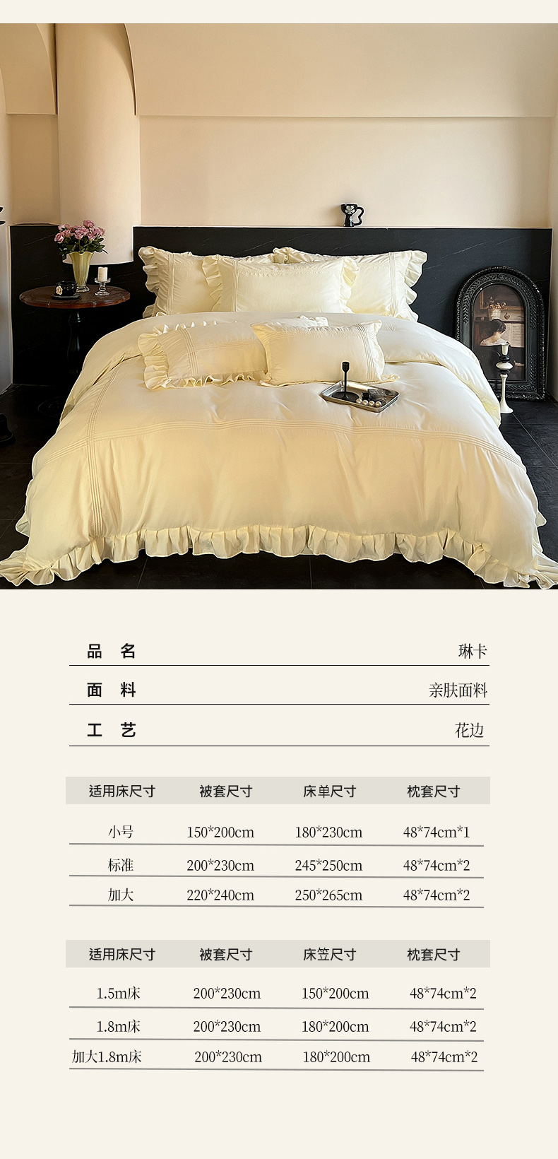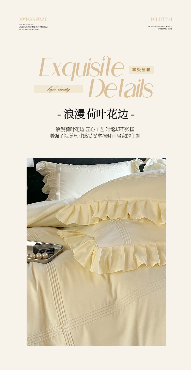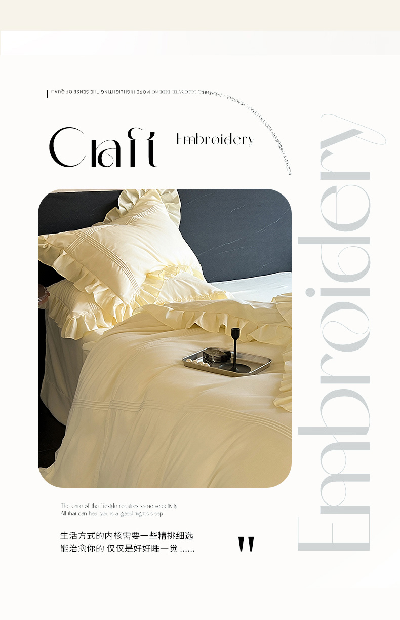 当前位置: 91家纺网 > 商品网购 > 床品套件 > 四件套 > 其它四件套 > 豪美鑫 2025新款柔肤棉刺绣公主风琳卡系列四件套 琳卡-米黄