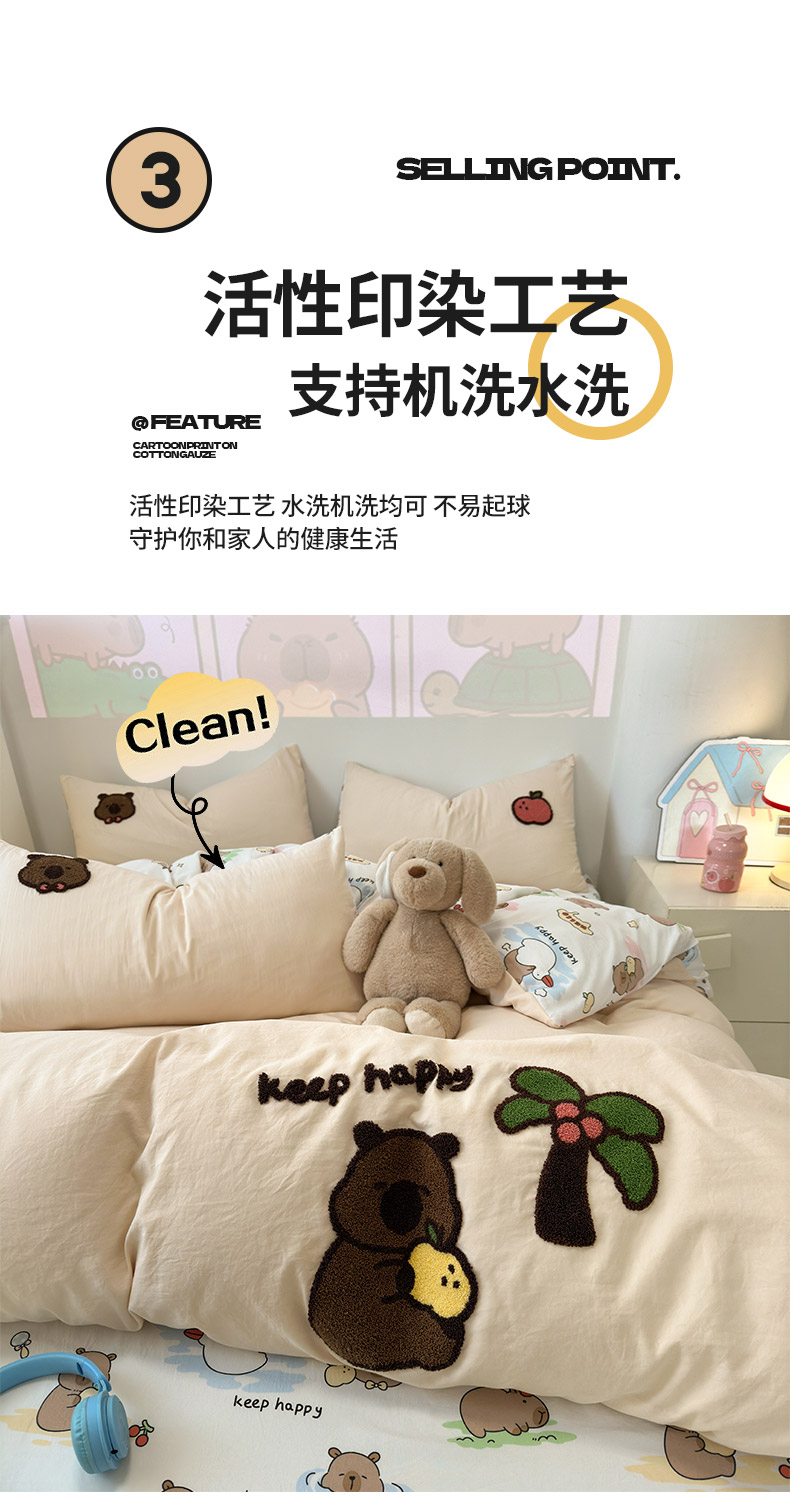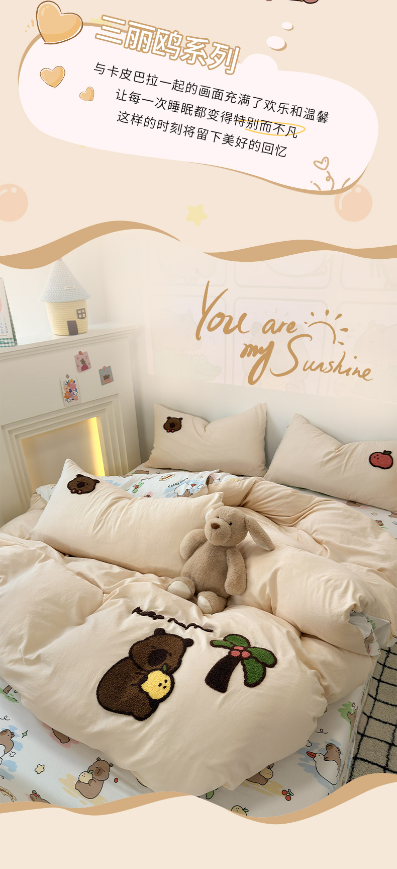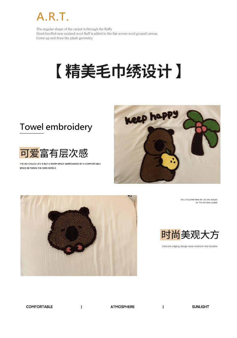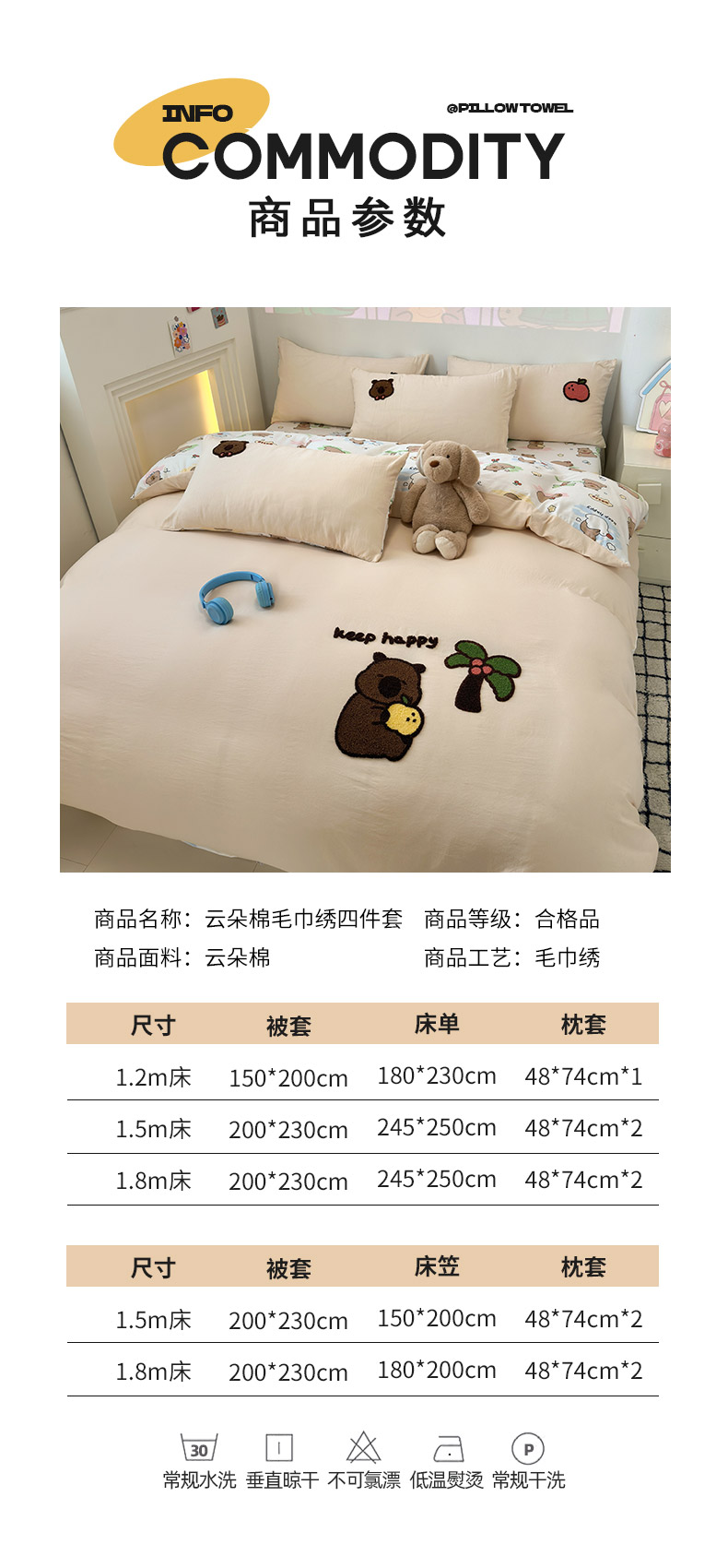 商品名称:乐坊 2025新款三丽鸥系列云朵棉毛巾绣四件套 卡皮巴啦