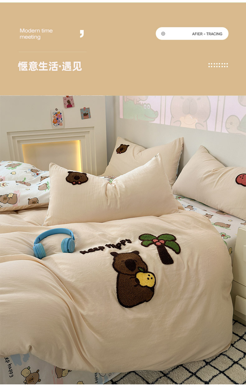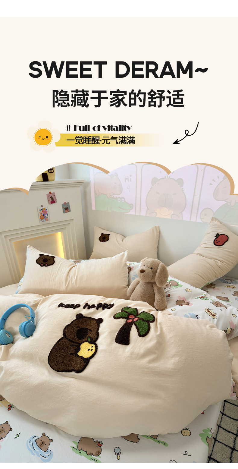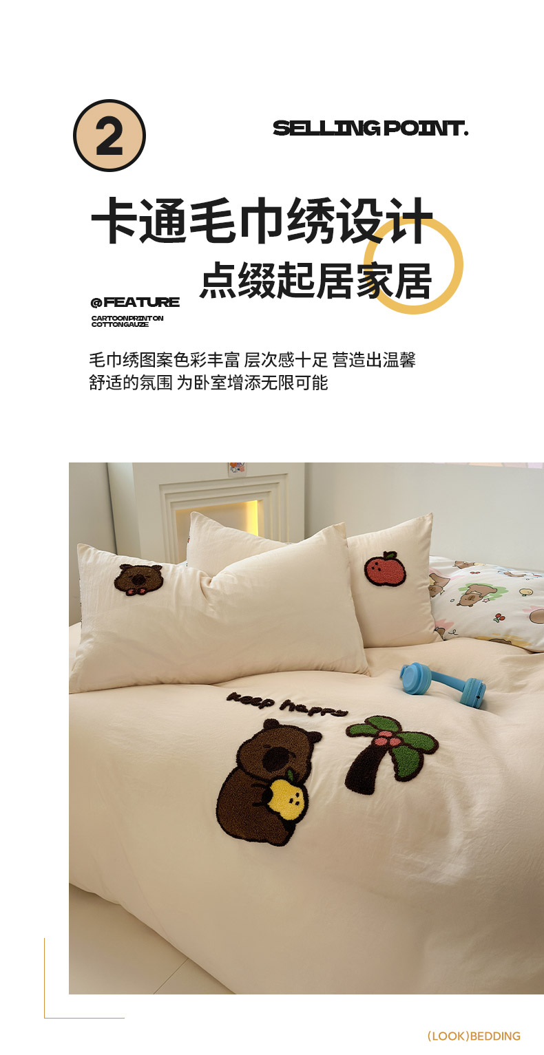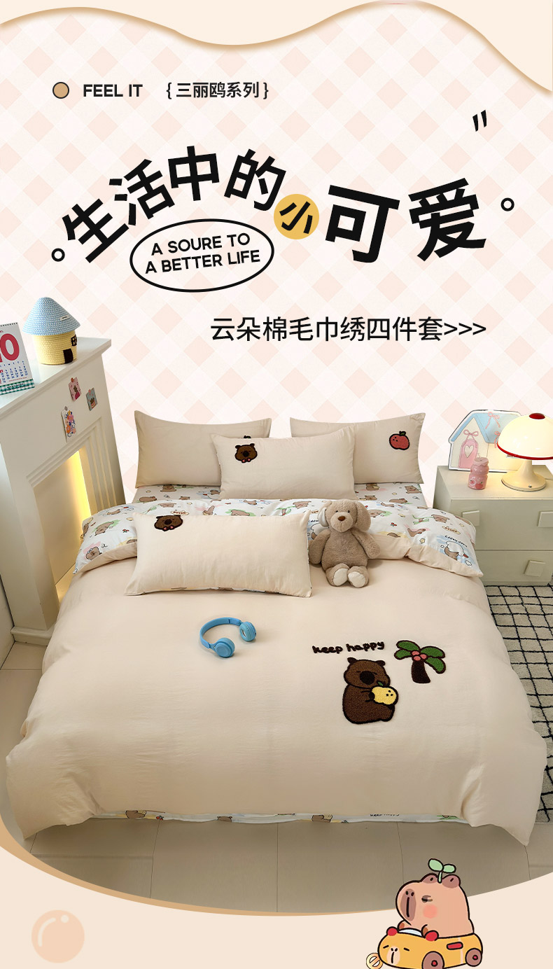 乐坊 2025新款三丽鸥系列云朵棉毛巾绣四件套 卡皮巴啦