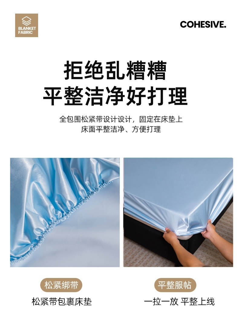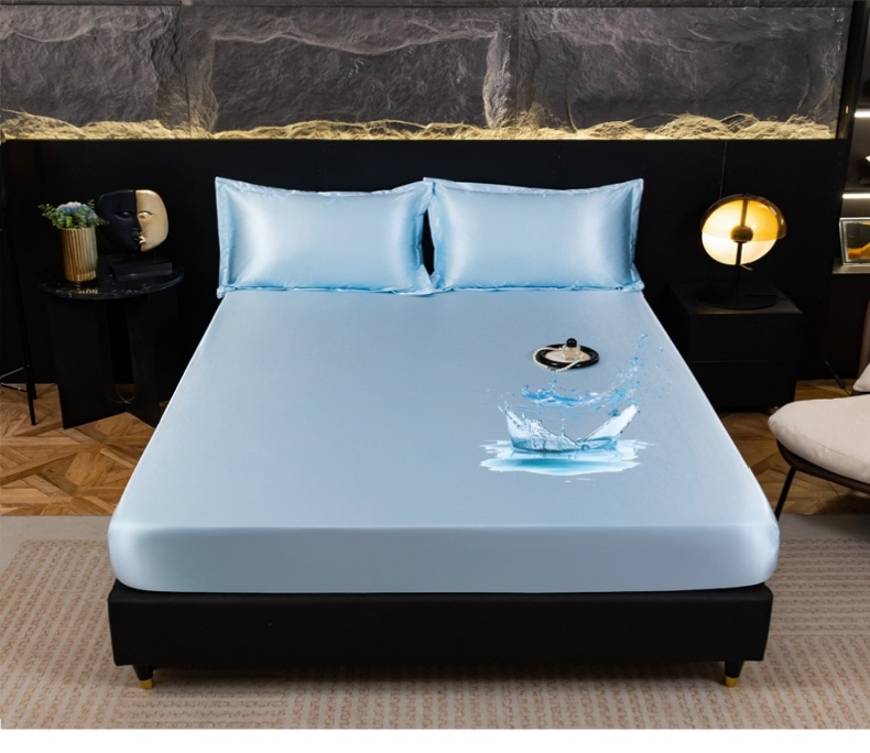 • 91家纺网 家纺一手货源 找家纺 圣比熊2025新款防水冰丝纯色床笠凉爽柔顺床垫保护罩 防水款-天空蓝