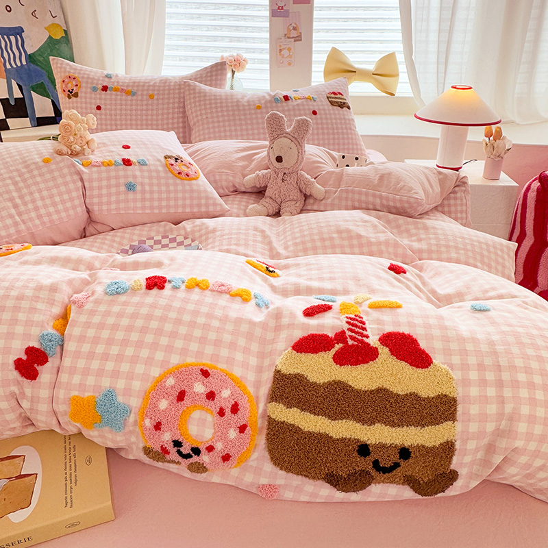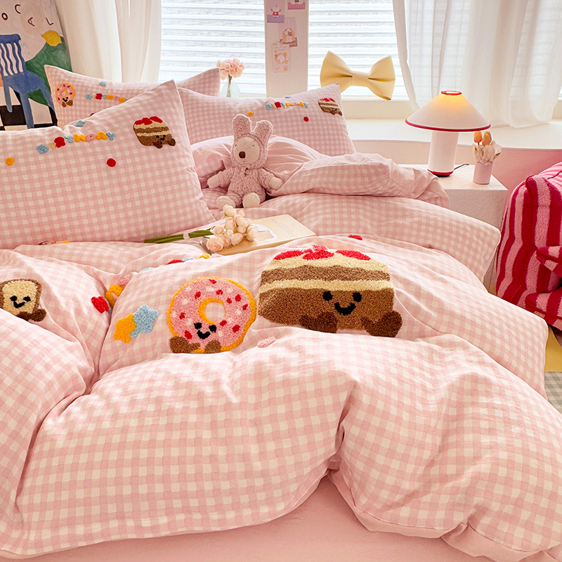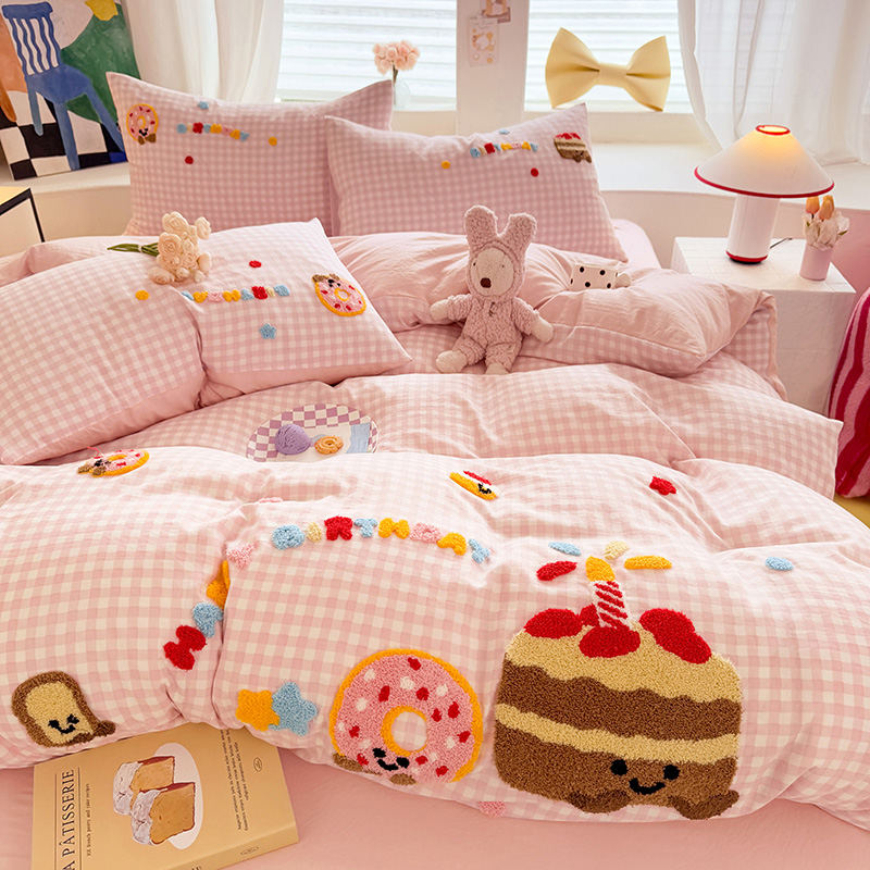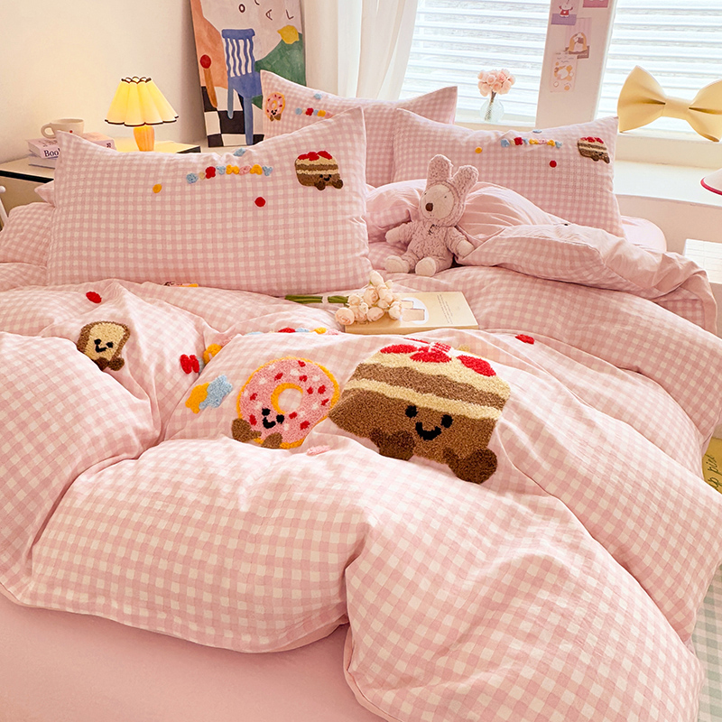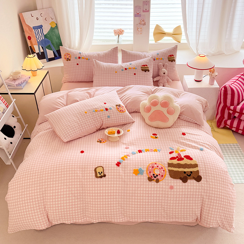 当前位置: 91家纺网 > 商品网购 > 床品套件 > 四件套 > 化纤普通四件套 > 优贝 2025爆款水洗棉云朵棉毛巾绣四件套(提供买家绣) 爱心甜点