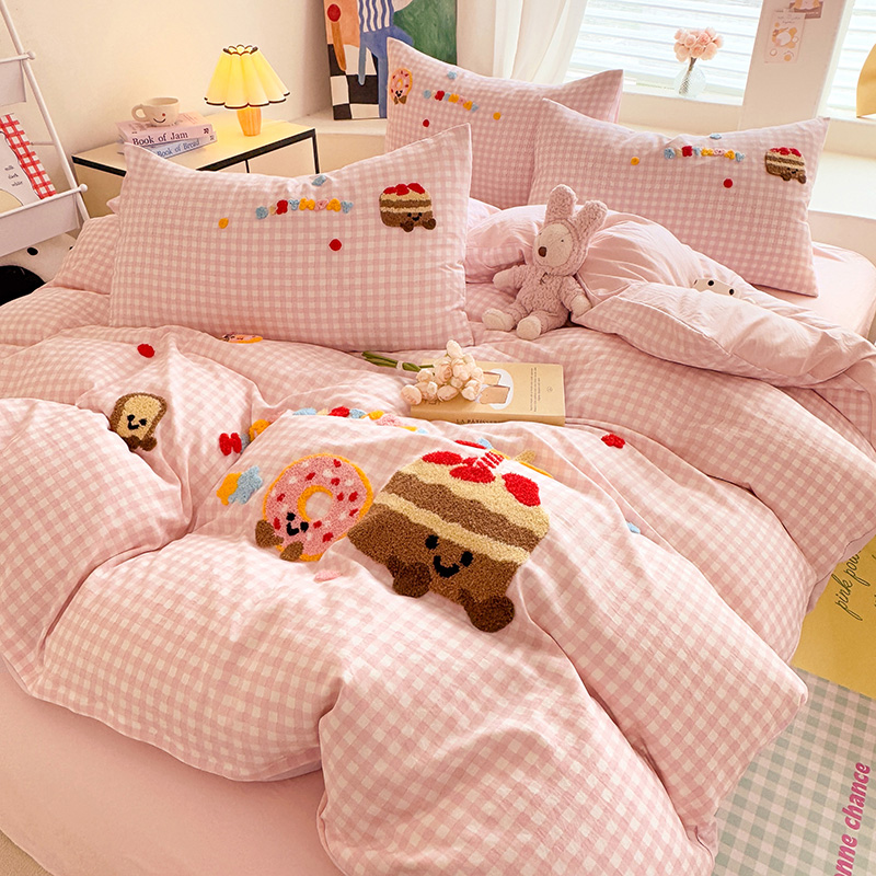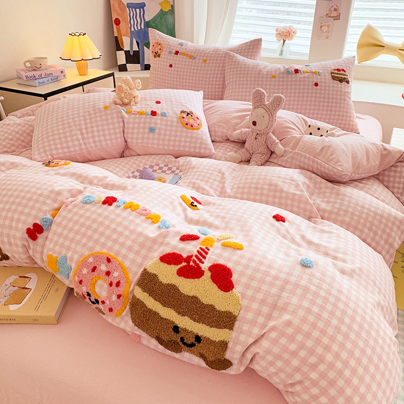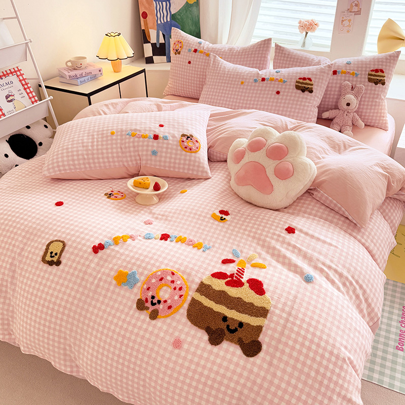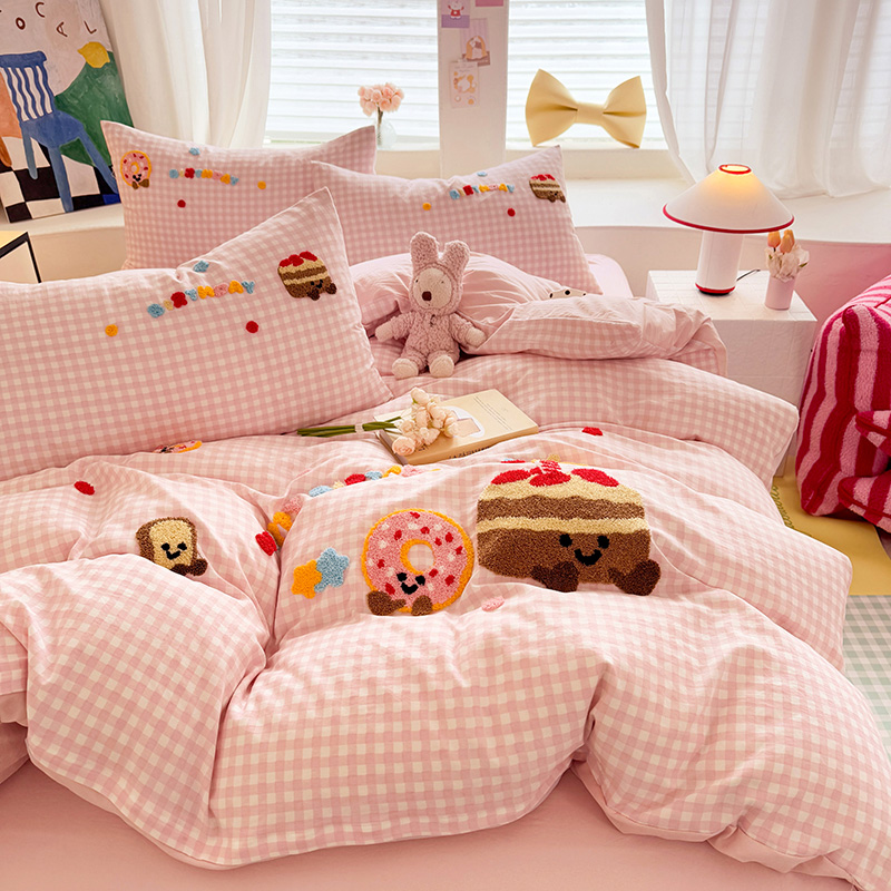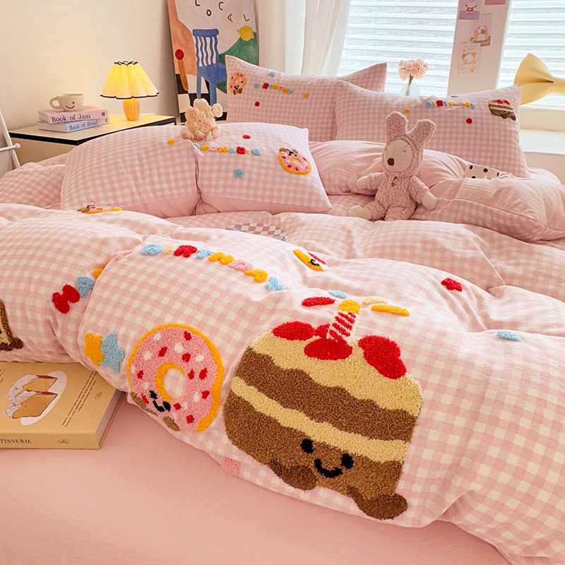 当前位置: 91家纺网 > 商品网购 > 床品套件 > 四件套 > 化纤普通四件套 > 优贝 2025爆款水洗棉云朵棉毛巾绣四件套(提供买家绣) 爱心甜点
