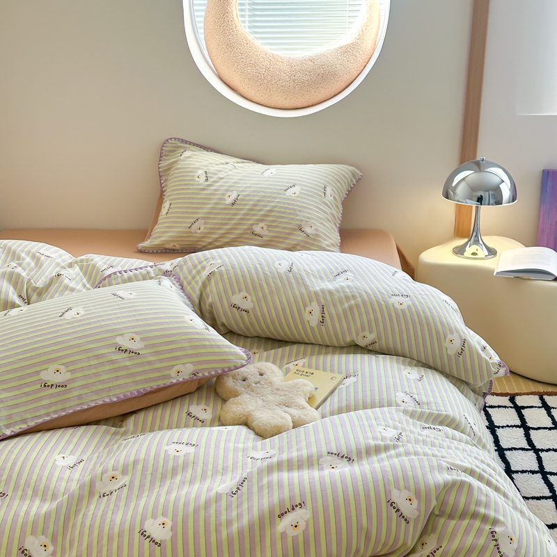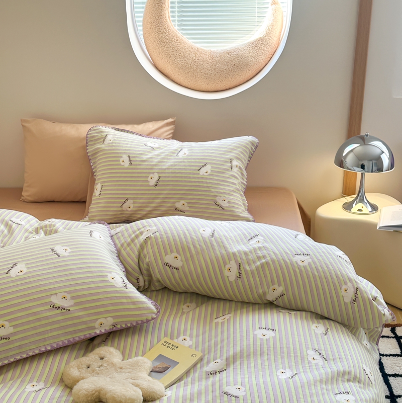 (总)觅糖家纺 2025新款色织水洗提花小波点贴布系列四件套,sweet兔,滑板小狮子,可爱松鼠,奶油比熊,小熊的故事,小羊驼