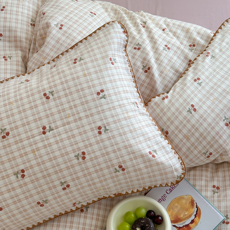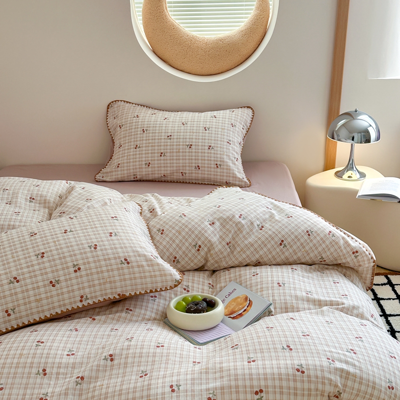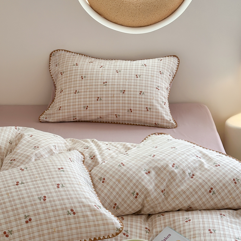 觅糖 2025新款全棉双层纱三角针极简治愈系列 格子樱桃-咖