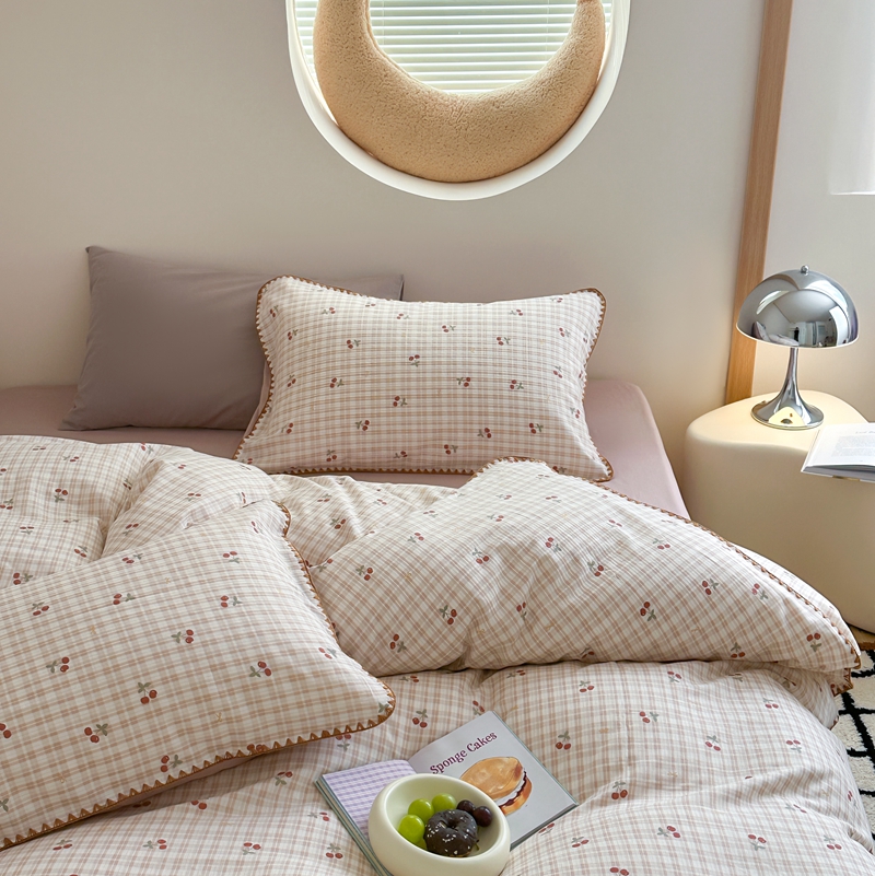 (总)觅糖家纺 2025新款牛奶绒荷叶边小小系列四件套,小小爱心白,小小樱桃酱