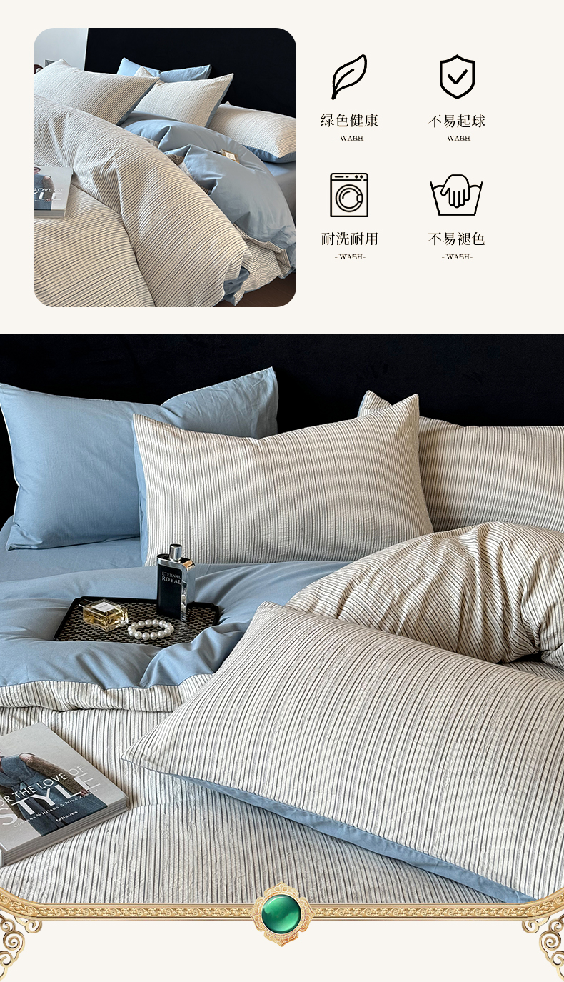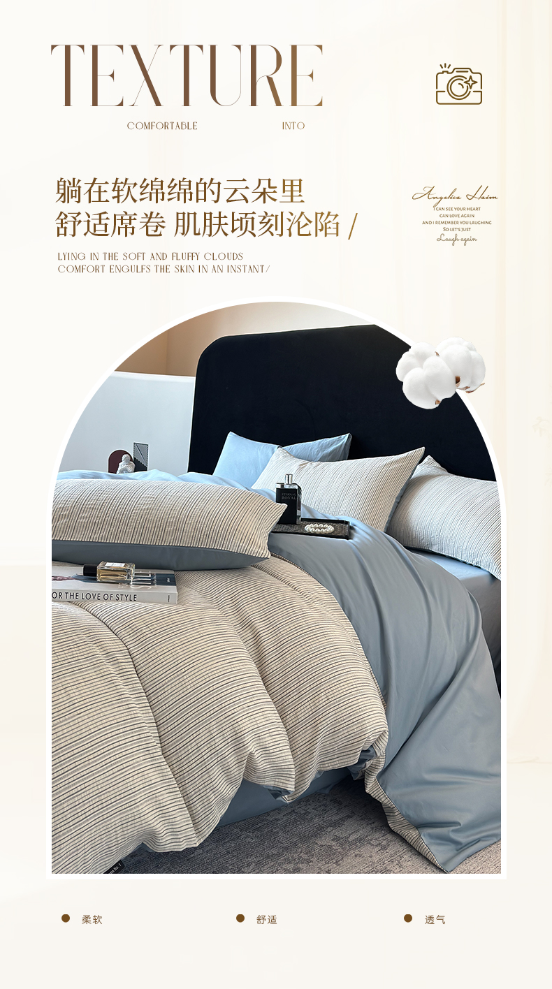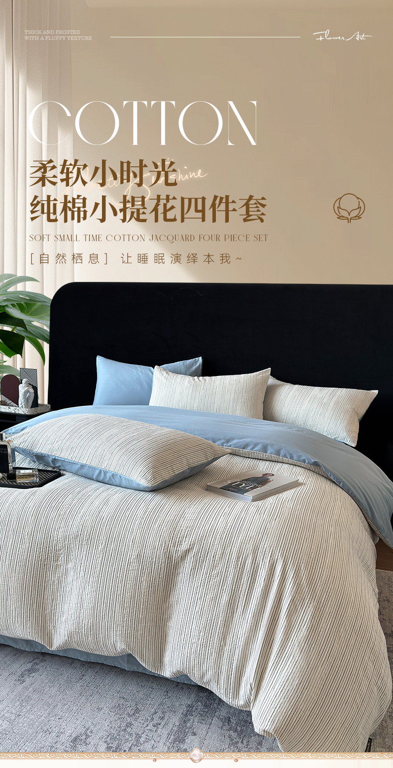 当前位置: 91家纺网 > 商品网购 > 床品套件 > 四件套 > 全棉普通四件套 > 家居1号2025新款13372全棉提花四件套--简爱系列 简爱-蓝