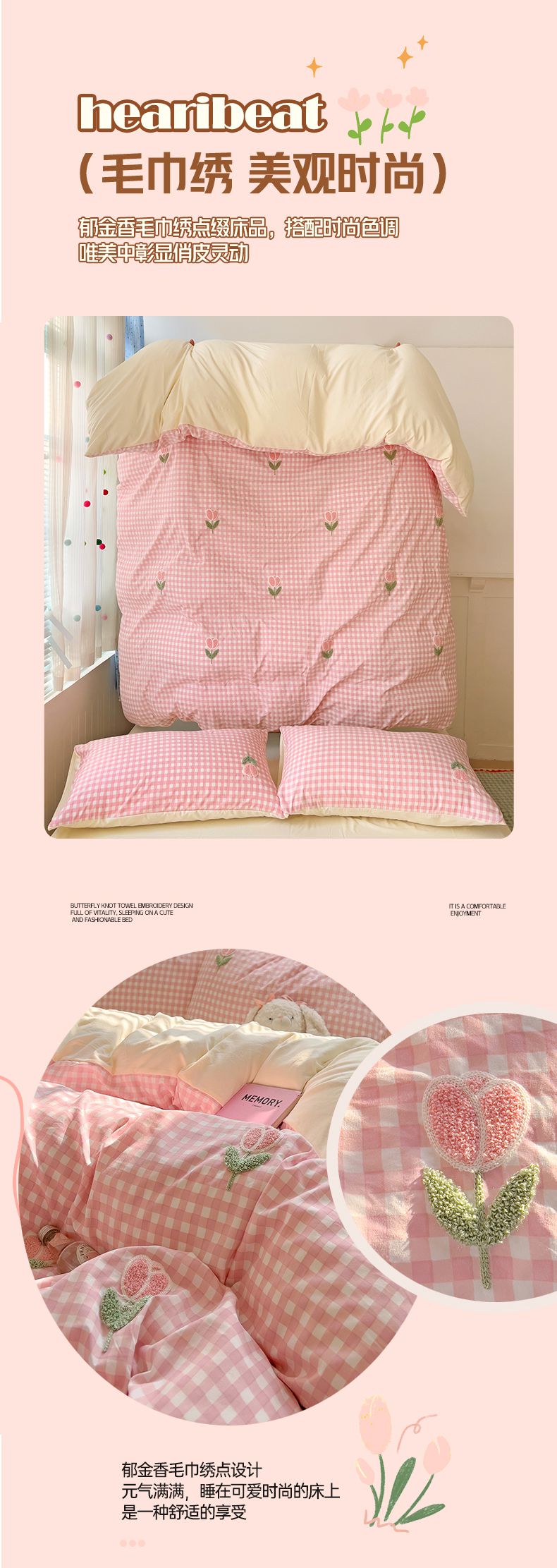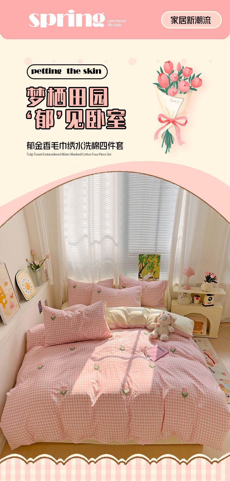当前位置: 91家纺网 > 商品网购 > 床品套件 > 四件套 > 毛巾绣四件套 > 灰鲸2025新款ins韩系田园风郁金香毛巾绣四件套 郁金香-粉格+奶油黄